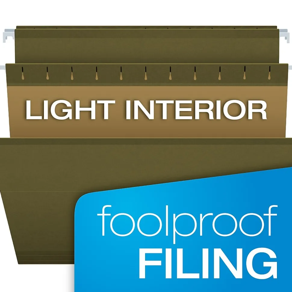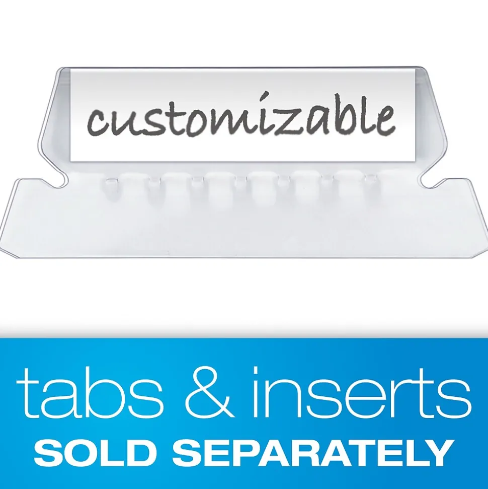 Keep file cabinet drawers orderly with these hanging folders. The five tab positions let you create the layout that works best for your business, and the clear tabs make labels easy to see. Each folder features poly laminate reinforcement to shield paperwork from moisture damage. These Pendaflex hanging folders accept letter-size documents for versatile filing options.