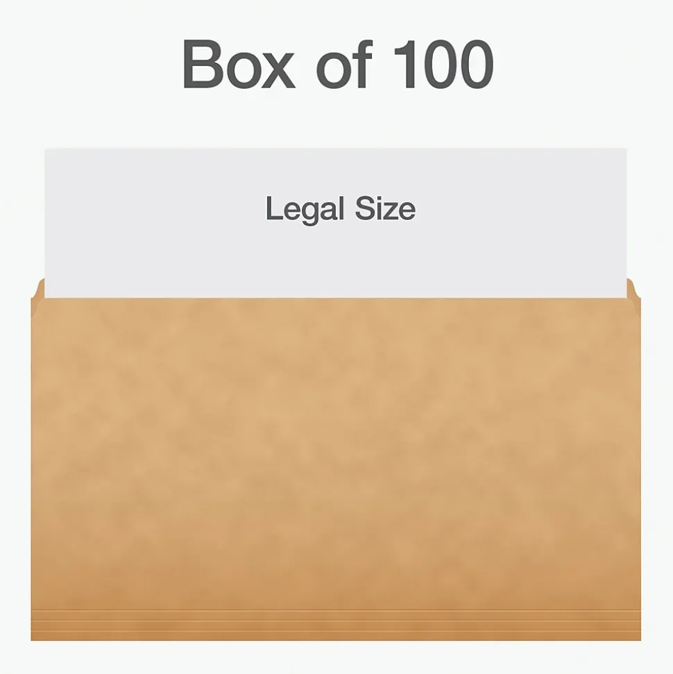 These Pendaflex File Folders are made from heavyweight 14 pt. paper to better withstand wear and tear. They come in a nice, neutral Kraft to match any home or office aesthetic. The straight-cut tab runs along the top of the entire folder, giving you plenty of space for labels, so you can easily find what you need. Each folder fits legal-size, 8.5″ x 14″, papers and is scored along the bottom for 3/4 inch expansion. Box of 100 Kraft file folders.