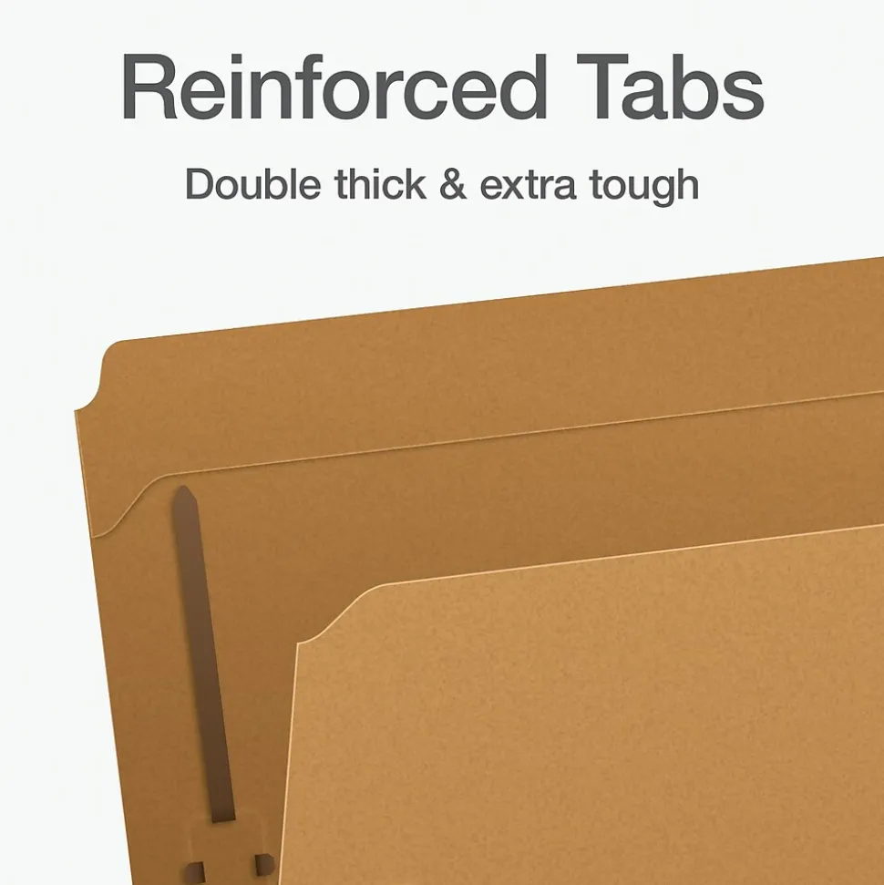 - Box of 50 reinforced fastener folders with double-thick tabs for exceptional durability