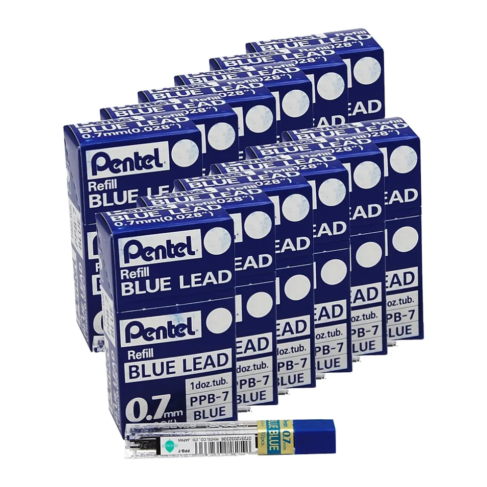 Pentel® Super Hi-Polymer® Lead is the #1 selling brand in the USA! Never needs sharpening, is strong and resilient. 0.7mm lead produces crisp, medium lines of consistent density. Fits any 0.7mm mechanical pencil. Each tube of Pentel Super Hi-Polymer HB lead is made of 100% recycled plastic and part of the Pentel Recycology line of products. Each tube contains 12 pieces. Sold as 12 tubes for a total of 144 pieces.