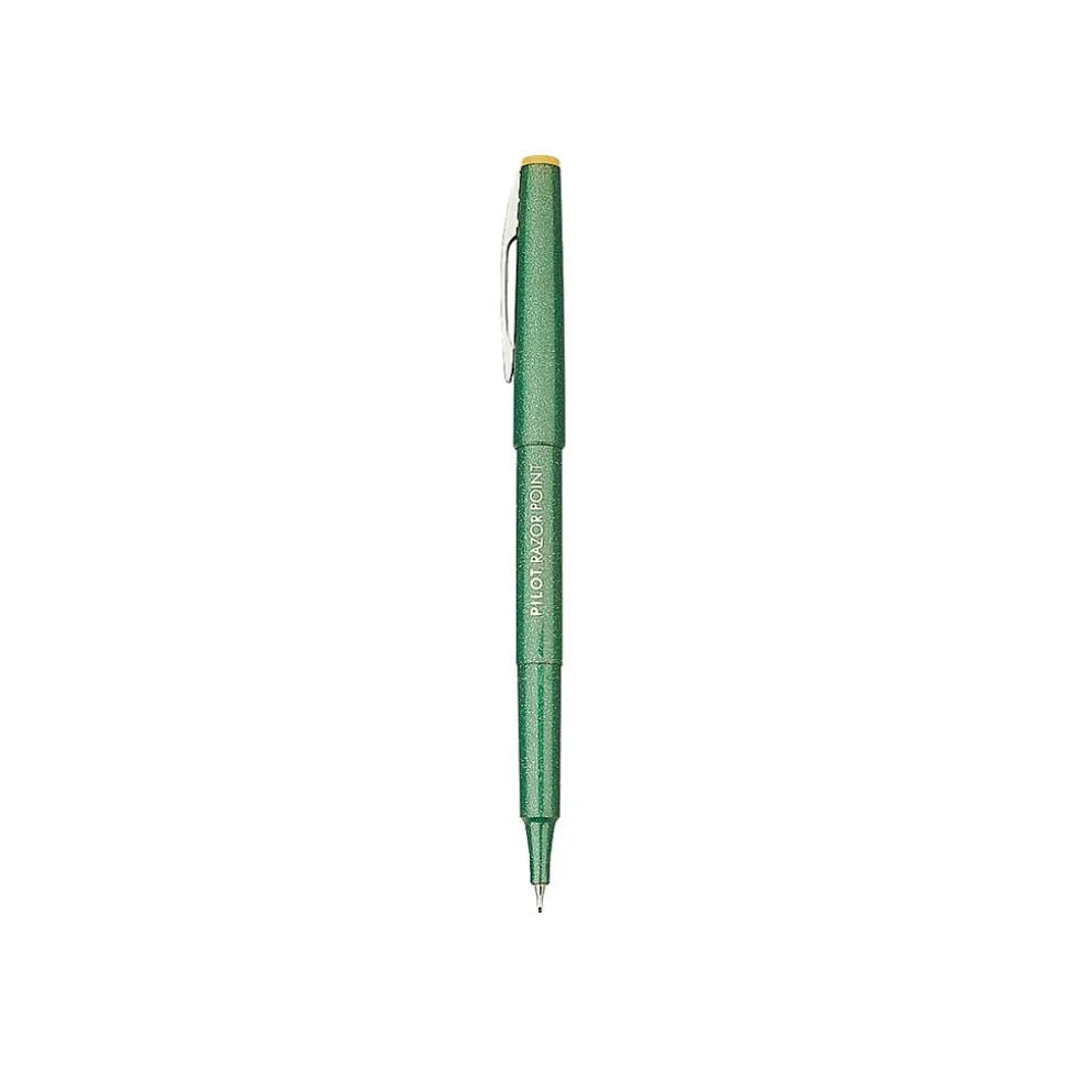 Draw crisp, clear lines by using these fine-line marker pens. With vivid green ink, these pens make it easy to get edits, corrections and other memos noticed, while the 0.3mm ultra-fine points produce precise, accurate lines. These Pilot Razor Point marker pens have pocket clips, so you can easily bring them on the go, and the metal collars offer long-term support.