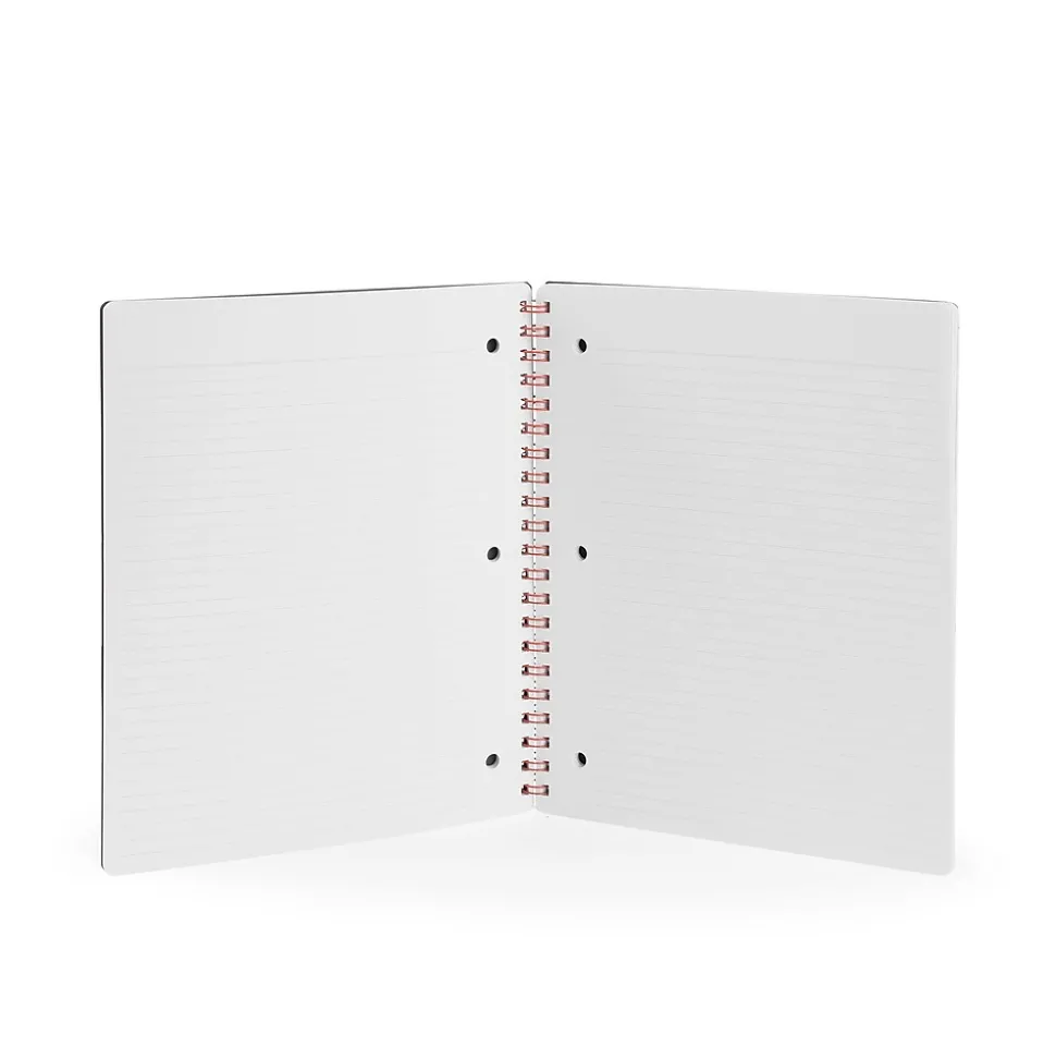 - Wire binding allows book to lie flat on desk surface for maximum writing area