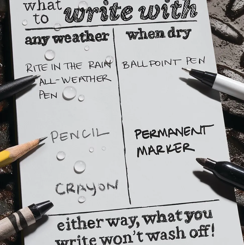 This is the truly go-anywhere, anytime, in any weather notebook. The Rite in the Rain All-Weather pocket notebook is conveniently sized to take with you on your outings. With a PolyDura cover and the 4″ x 6″ universal pattern, this 100-page (50-sheet) notebook is perfect for any situation.
