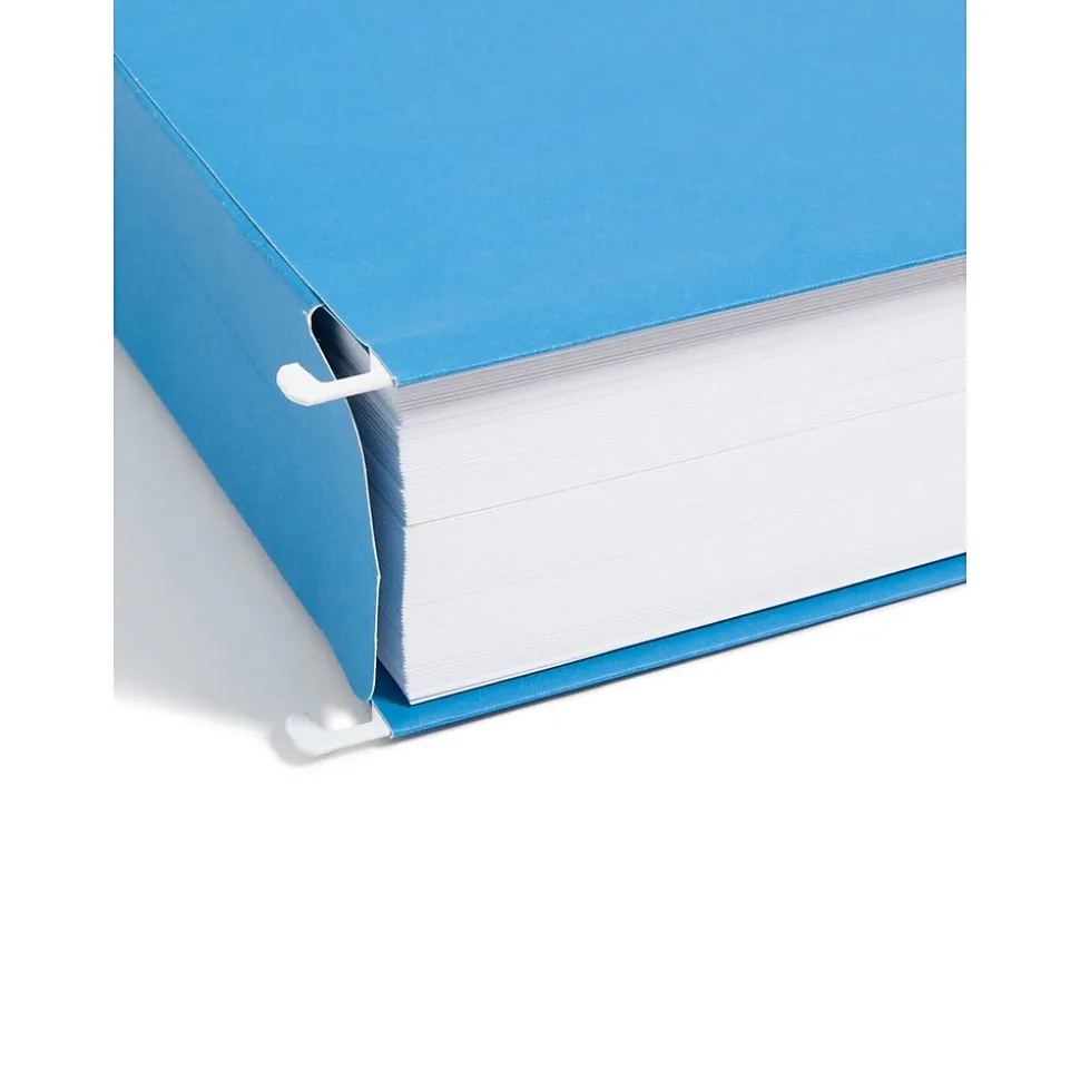 Keep large sets of paperwork together by using these letter-size hanging file pockets. Sold in a box of 25, these pockets can easily reduce clutter around the office, home, or classroom. These Smead sky-blue hanging file pockets are made with a durable bottom and sides, keeping documents contained and preventing them from slipping out when removing the pocket.