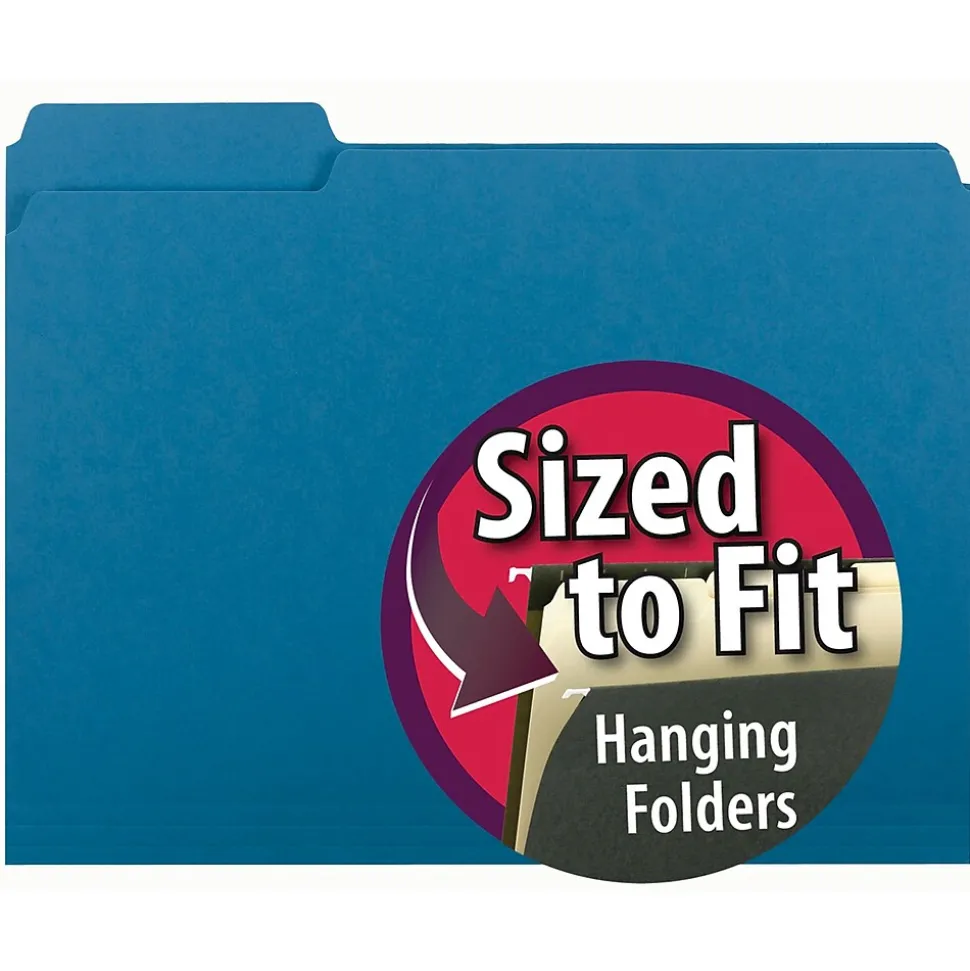 Smead® Colored interior file folder in sky blue color measures 9 3/16″ x 11 5/8″ and is ideal for accommodating 8.50″ x 11″ sized papers. Acid free folder in letter size aids to keep your documents organized.