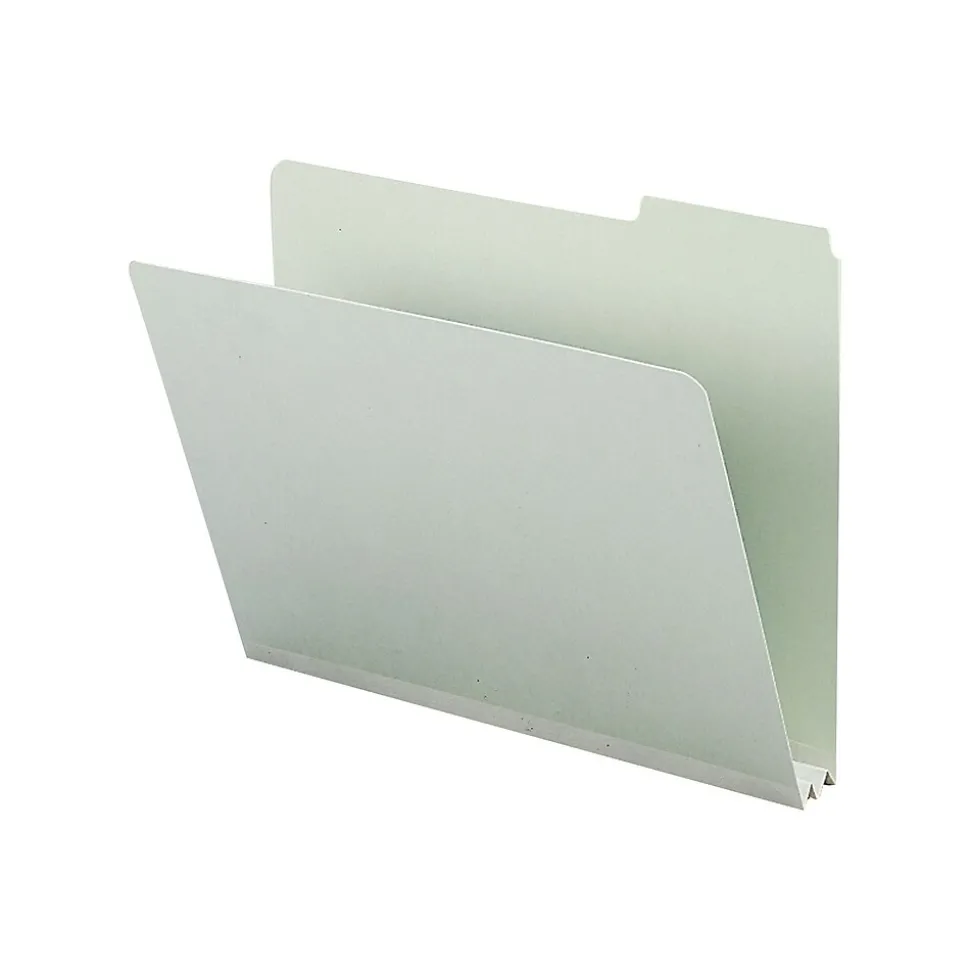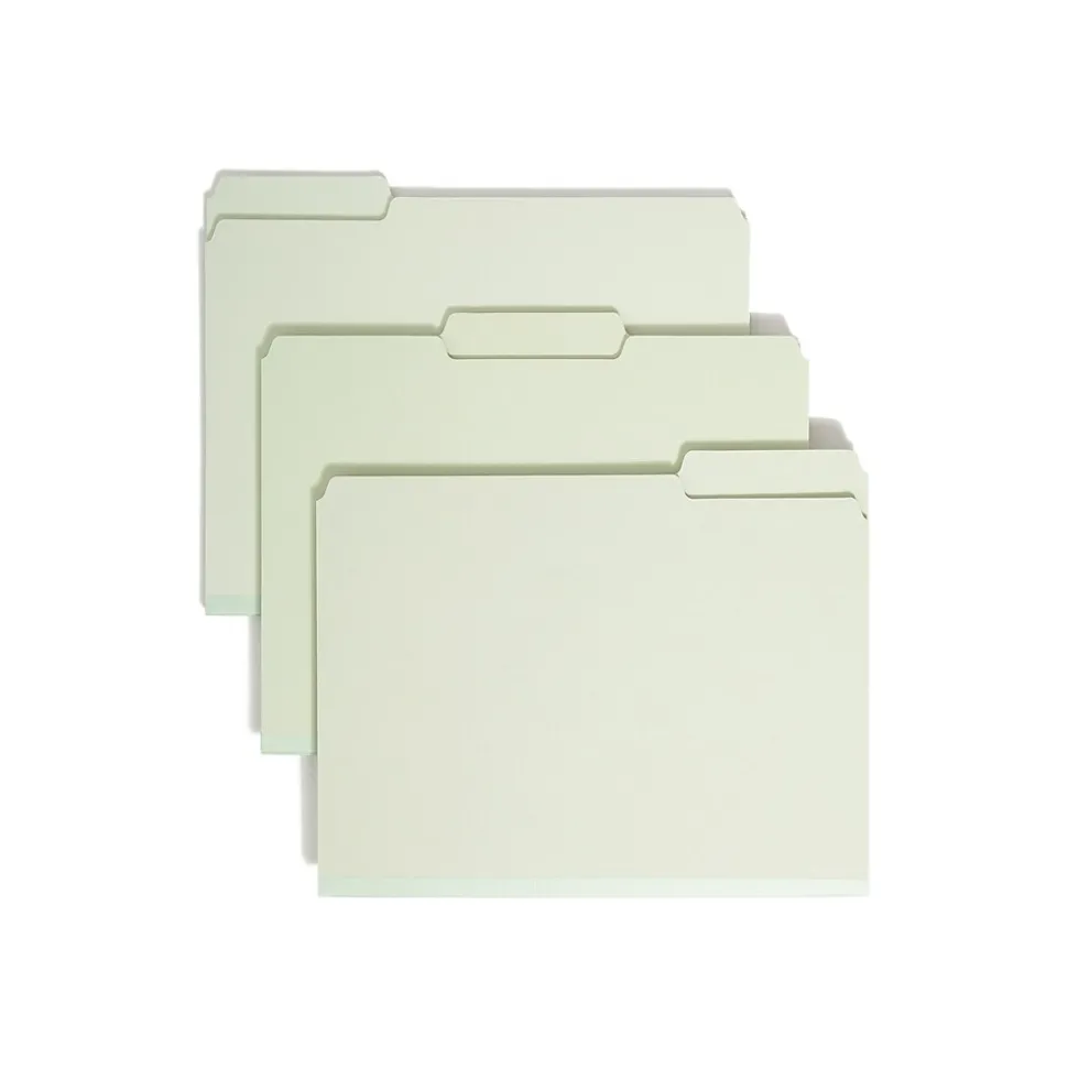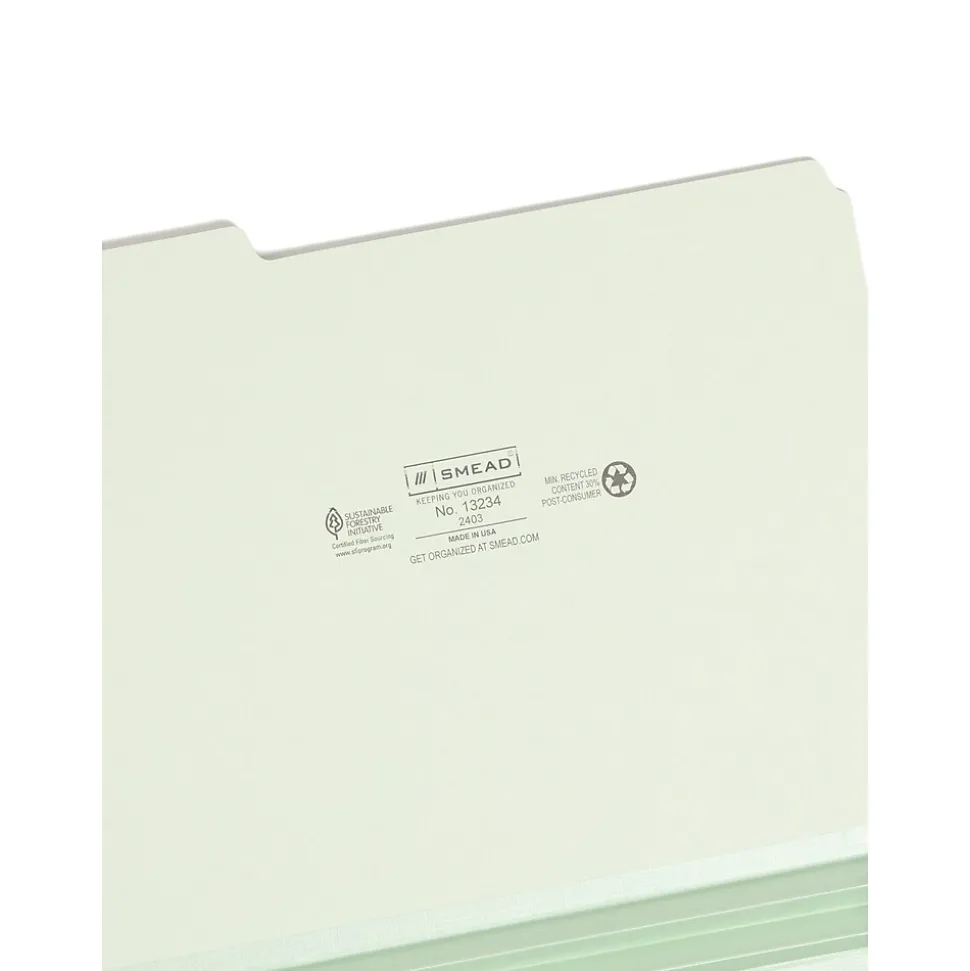 Ensure office paperwork and client files are neat and accessible with this 25-count pack of Smead file folders. Assorted 1/3-cut tabs integrate with existing filing systems and keep titles visible to let you find information quickly. The 25-point pressboard material and 2-inch expansion with a reinforcing gusset of these Smead file folders provide storage space and durability to hold bulky, frequently used files.
