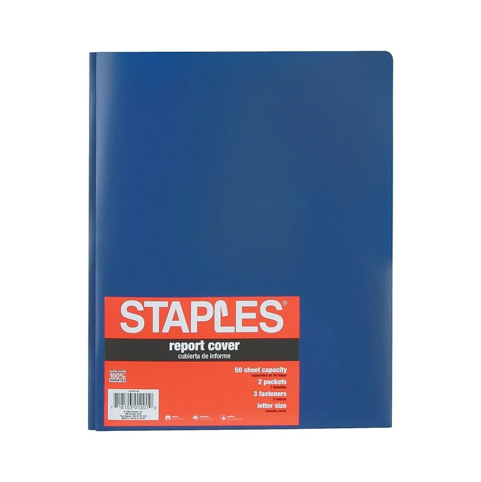 Help reports look the best they can with this poly two-pocket folder. Each folder features prong fasteners that prevent loose papers from falling out, while the water-resistant poly material provides durability and keeps contents looking pristine. This Staples poly two-pocket folder has a built-in slot for holding business cards, and each pocket provides ample space for charts, graphs and other papers.