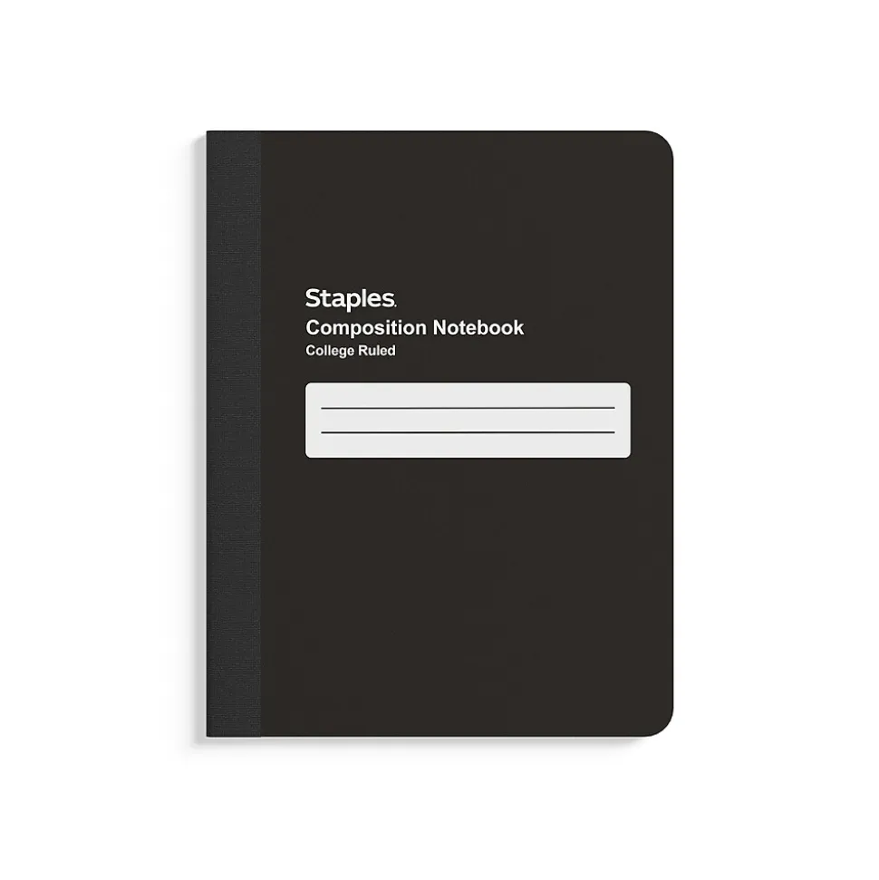 Flip through sheets to review ideas recorded in these composition books. The standard size helps you keep concepts well-organized, while the poly cover resists damage. With 80 sheets each, these composition books are ideal for taking to meetings or lectures. These Staples 7.5 x 9.75-inch black poly composition books feature college-ruled sheets, offering efficient space for legible writing.