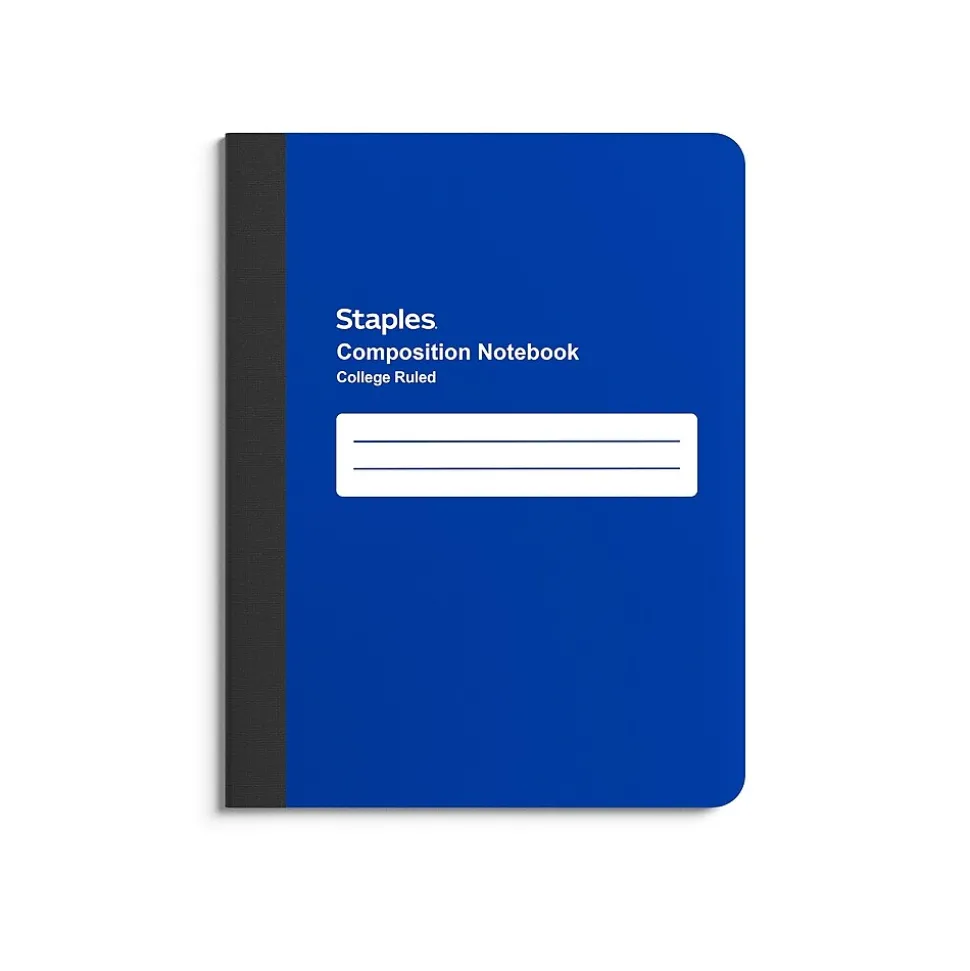 Keep notes in one convenient place with this college-ruled composition notebook. A blue poly cover offers durable protection for long-lasting use, while the center stitching makes it permanently bound, preventing the loss of important pages. This Staples 7.5 x 9.75-inch blue poly composition notebook is college-ruled, giving you ample space to work.