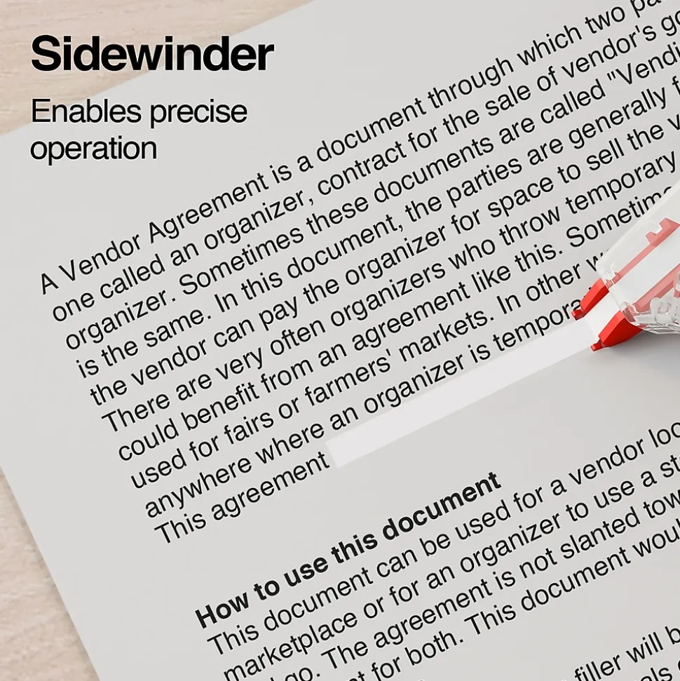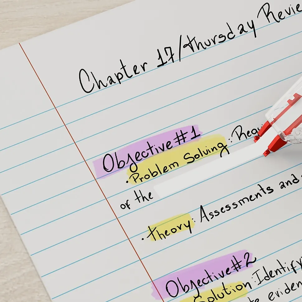 Write over text with these correction tapes. The fast-dry formula allows for quick error correction, while the side applicator design enables precise operation. Featuring a compact build, these correction tapes stow easily in desk drawers for hassle-free storage. These white Staples sidewinder correction tapes roll smoothly on a wide range of paper surfaces and leave no shadow or smudges for clean-looking documents.