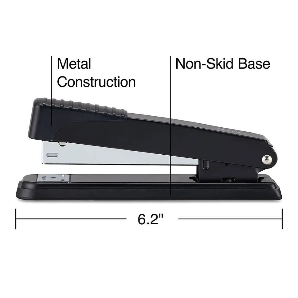 - This stapler has a non-skid base to prevent it from moving on the desktop