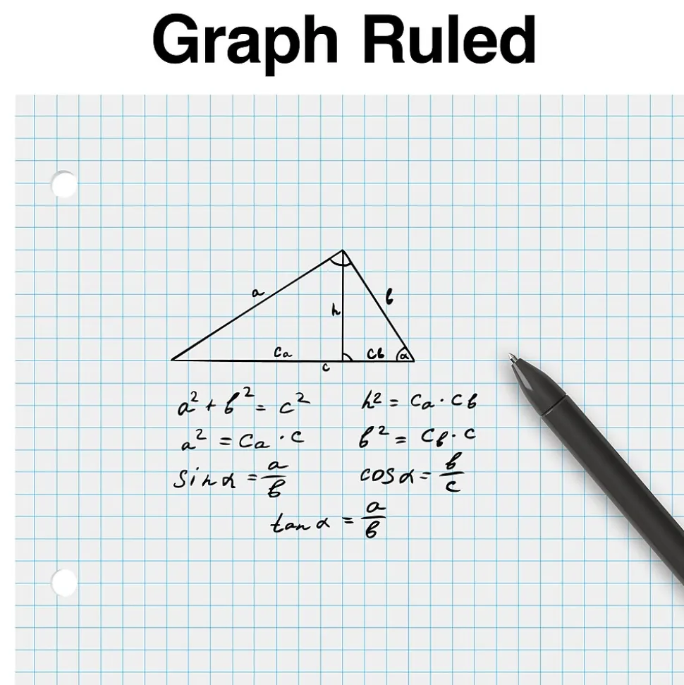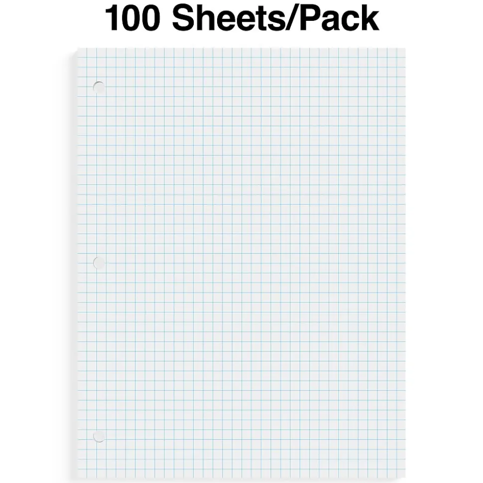 Keep plenty of pages in your binders with this versatile filler paper. The graph ruled format lets you write notes, construct charts or create graphs, ensuring flexibility, while the 100 sheets provide ample supply. This Staples 8.5 x 11-inch filler paper features a standard three-hole punched design, working well with binders and folders for efficient use and storage.