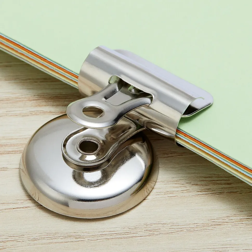 - Magnetic bulldog clips stick instantly to any steel surface