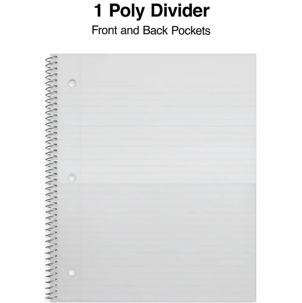 Get ample writing room from the 100 sheets of this wide-ruled notebook. Durable poly construction keeps the pages safe from water and ripping, while the wide-ruled spacing makes it easy to write legibly. This Staples Premium 8 x 10.5-inch teal poly 1-subject notebook has perforated pages that make it easy to remove sheets cleanly.