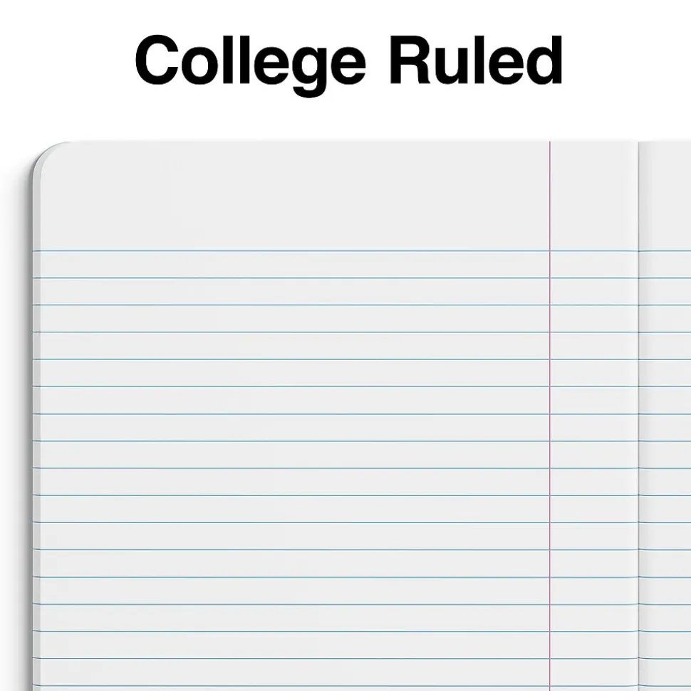 Bring your notes with you in this small pink poly composition notebook. The bound edge keeps pages secure, while the poly cover resists rips and tears for long-lasting durability. Each page features a college-ruled format to keep writing neatly aligned. With its compact size, this Staples 5 x 7-inch pink poly composition notebook fits neatly in a briefcase, backpack or purse.