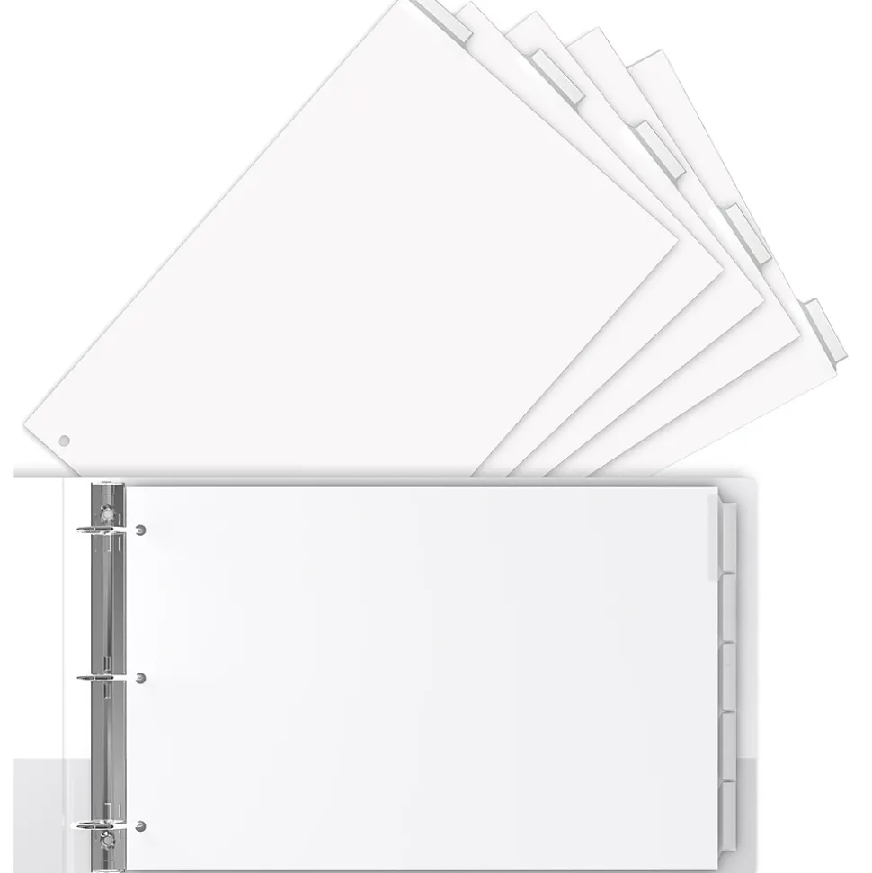 - Index dividers are tabbed and sized to fit 8 1/2″ x 14″ landscape paper in legal binders