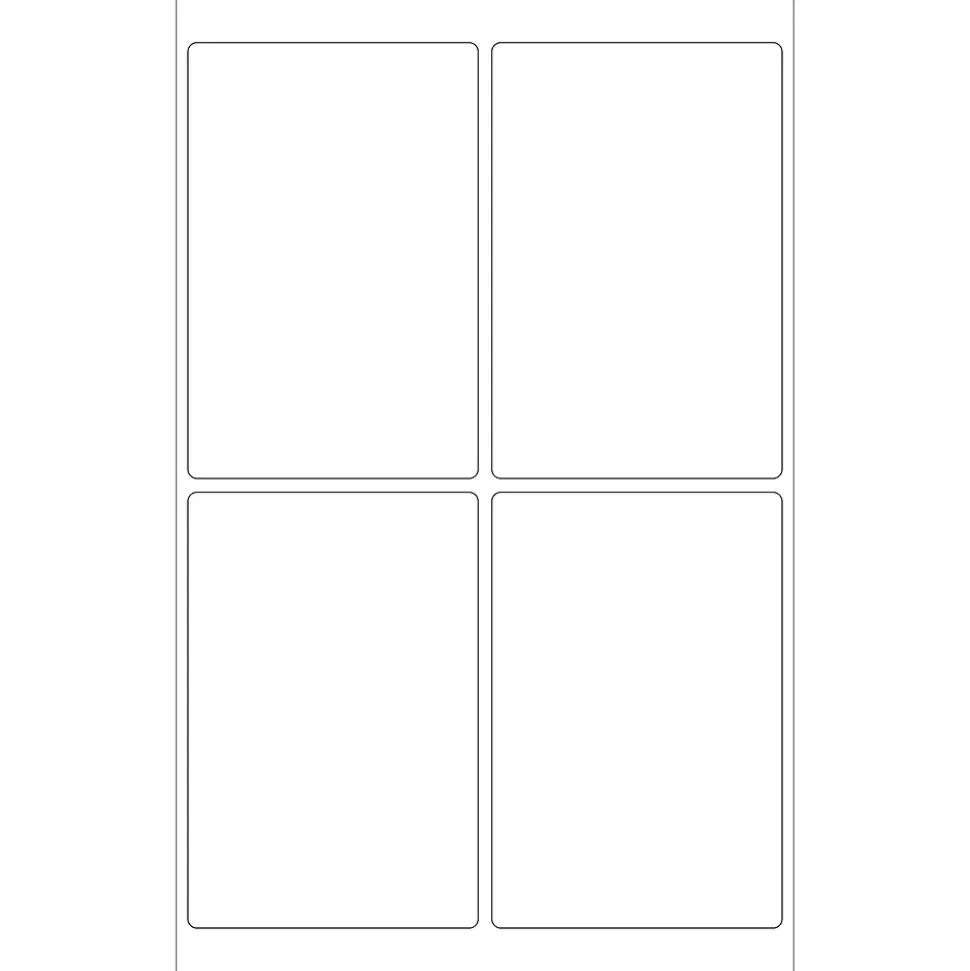 4″ x 6″ White Rectangle Laser Labels. Use to create your own product or mailing labels. Labels work with both Laser and ink jet printers. Permanent adhesive. Labels stick to a variety of smooth surfaces including paper, corrugated, plastic, wood, glass and metal.