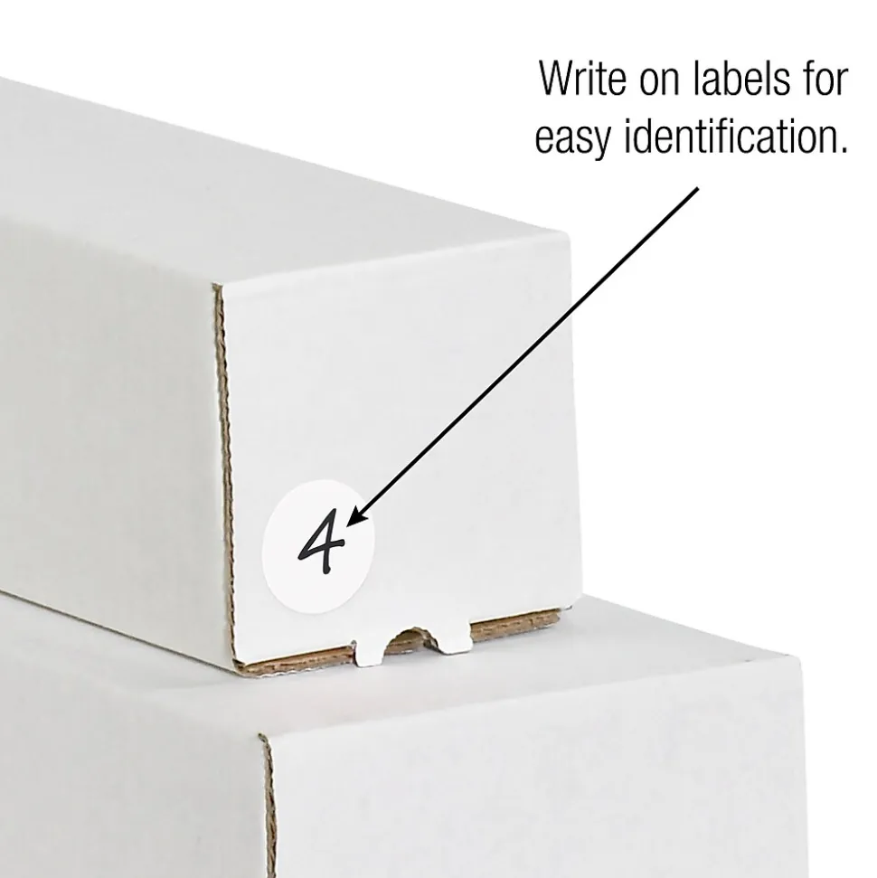 1″ Circle – White Removable Labels. Use for temporary coding of items. Leaves no residue upon removal. Use on corrugated boxes, paper and glass. Write on surface.