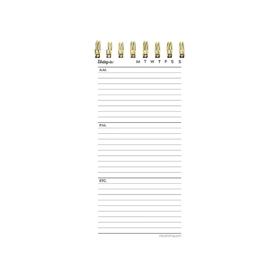Navy and light blue stripes give this daily agenda a professional look which is still full of personality. Conveniently sized at 4″ x 8.5″, it is perfect for any on-the-go lifestyle. With the open-dated format, you can choose how structured your plans will be for a particular day. Each of the 130 lined perpetual sheets has a place to circle which day of the week it is and a place for the day’s date. Each sheet is also segmented into three sections: morning plans, afternoon plans, and etc. section for those extra daily reminders. The planner features wire-O binding that allows it to lay flat easily, a convenient flip between pages, and hard, durable front and back covers. Secured with an elastic band.