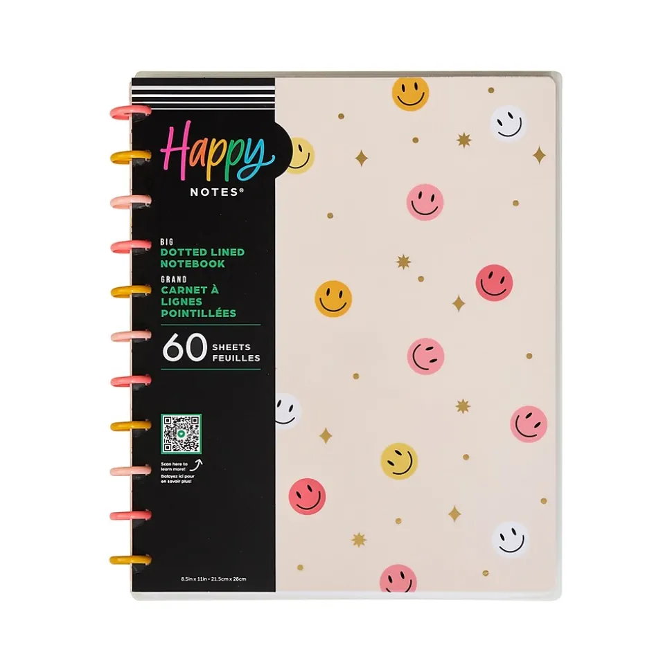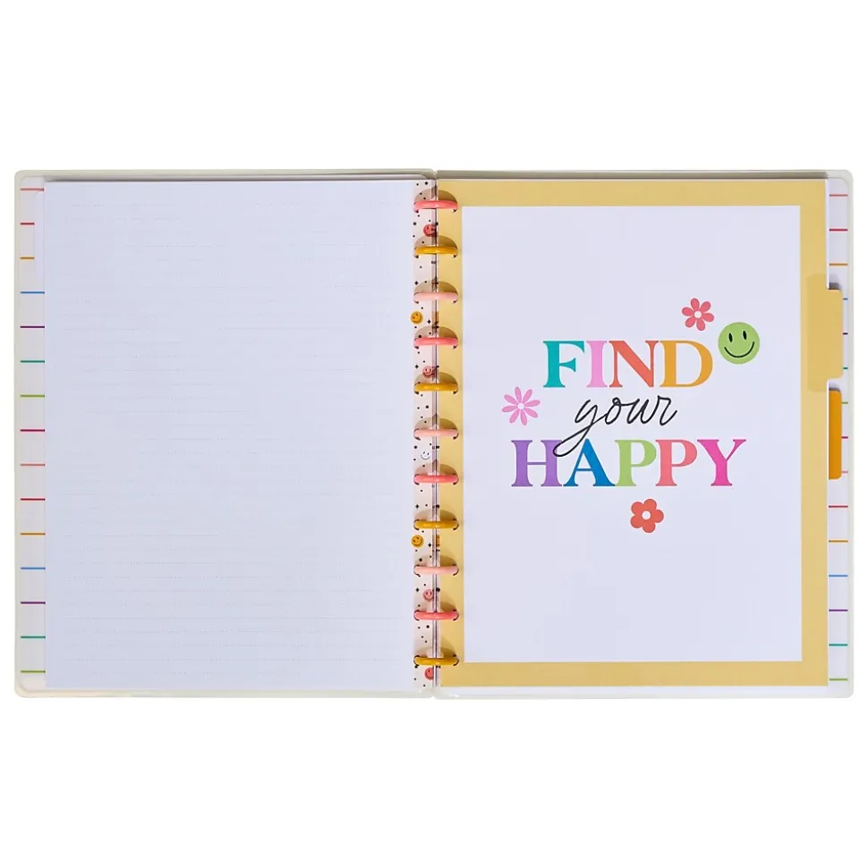 Find your happy. Document and keep track of all your daily to-dos in The Happy Planner Happy Brights big notebook. This dotted notebook features positive vibes and a place to plan your happy.