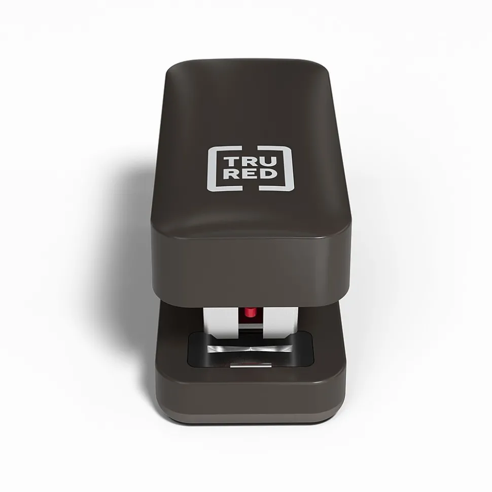 Organize and bind multipage documents with this mini stapler. The optimized design lies flat on your desk when opened and enables easy tacking, while the rubberized bottom provides a nonslip grip and stays put on your table. This TRU RED mini stapler has a convenient staple level indicator so you easily know when it’s time to replenish the tray.