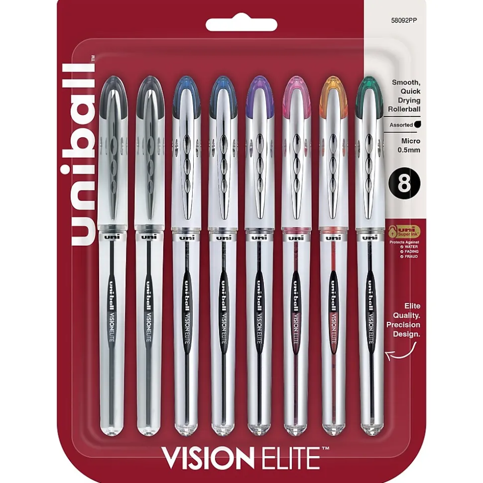 Write with the precision and ease of a fountain pen without the mess by using this micro-point pen. The fade-resistant and water-resistant ink is formulated to stop document alteration, and it’s airplane-safe, so it doesn’t leak due to cabin pressure changes. This package of uni-ball Vision Elite pens has eight assorted colors.