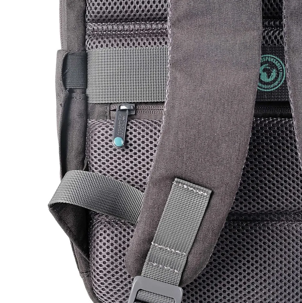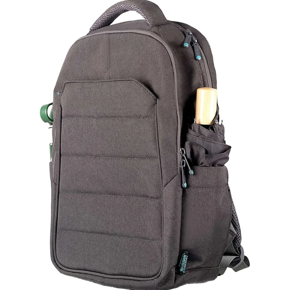 The GREENEE Dual-Compartment Backpack for 13-In. to 14-In. laptop computers from Urban Factory has a high-density, foam-reinforced compartment for a laptop computer up to 14 in. A second compartment is for your accessories and personal items for excellent load capacity. The GREENEE features a front flat pocket and 2 expandable side pockets for lots of space and quick access to an umbrella or bottle. The water-repellent material and robust design will make this backpack your best day-to-day ally. It is made of r-PET, a material resulting from the recycling of plastic bottles, in order to preserve our environment as much as possible.