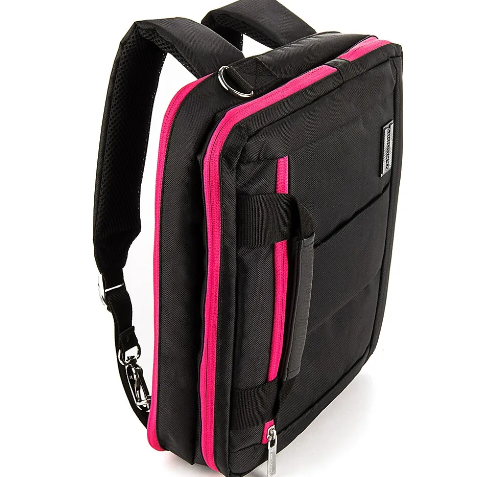 3 in 1 Laptop Case Fits up to 15.6 inch Laptops. Hybrid carrying system, coverts into backpack, briefcase style, and messenger bag style. Dedicated accessory pockets for phones, business cards, pens, stylus, and tablets/eReaders.