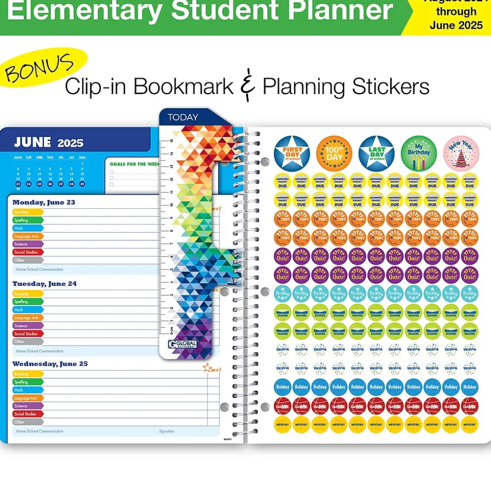 - 8.5″ x 11″ Student Agenda & Academic Planner for elementary school students. Planner runs from August 2024 through June 2025