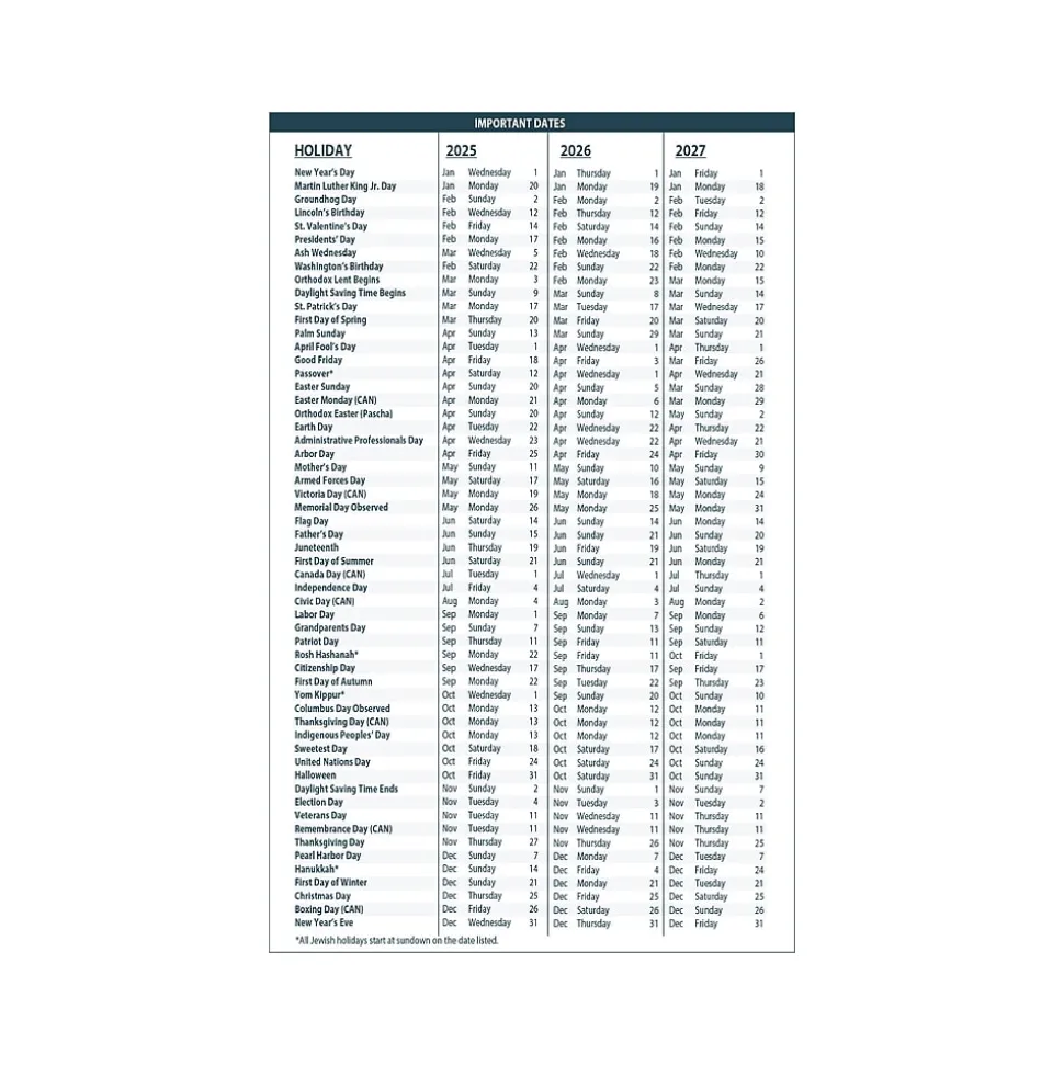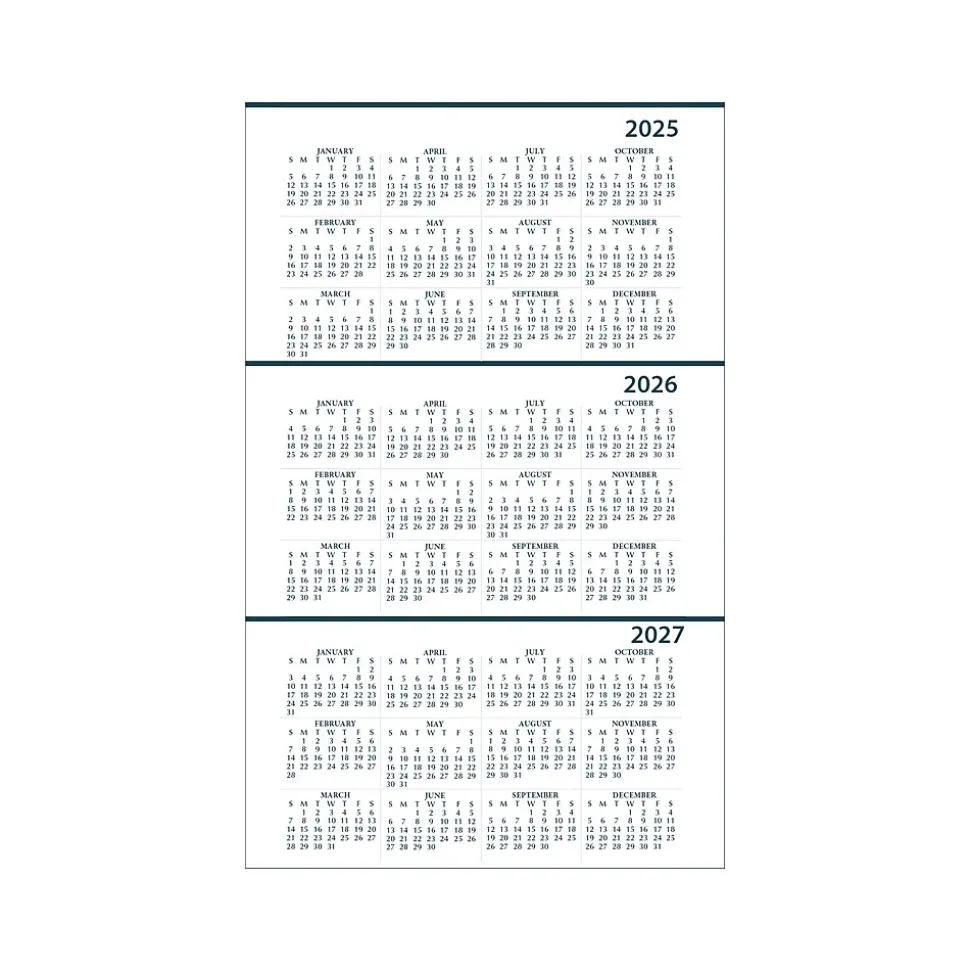 - Three-year calendar reference page for long-range planning