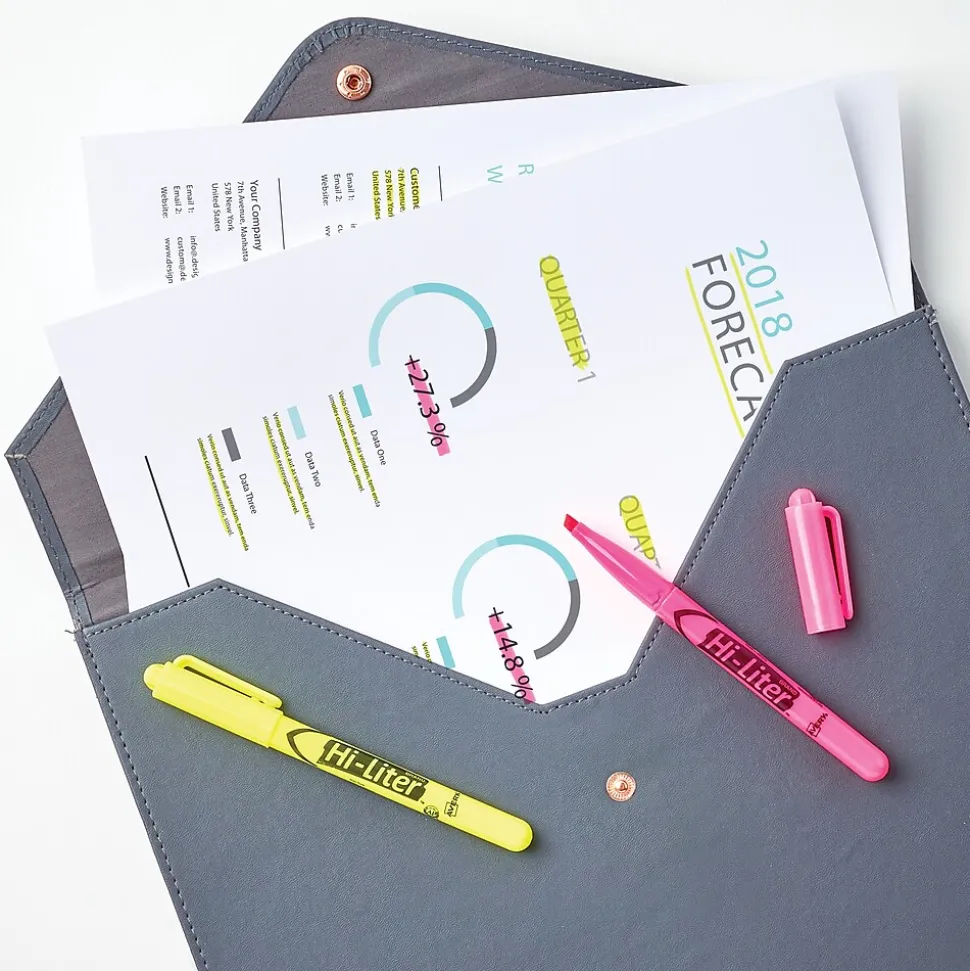 HI-LITER® Assorted desk style highlighter features chisel tip that does not fray or mush. Highlighter has durable plastic tip for smooth highlighting.