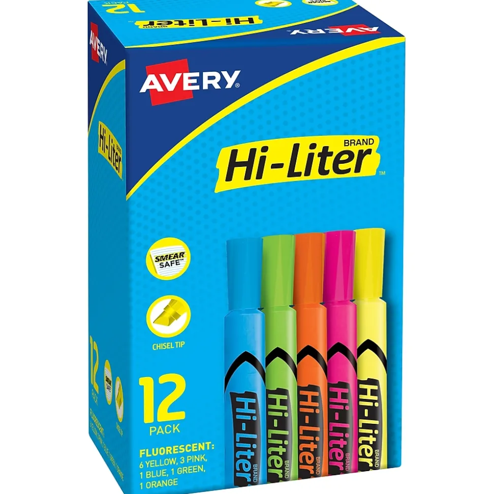 Draw attention to key words and phrases with these assorted-color nontoxic highlighters. With a chisel tip, these HI-LITER desk-style highlighters make it easy to create precise strokes, while the smear-resistant ink formula provides crisp, clear strokes.