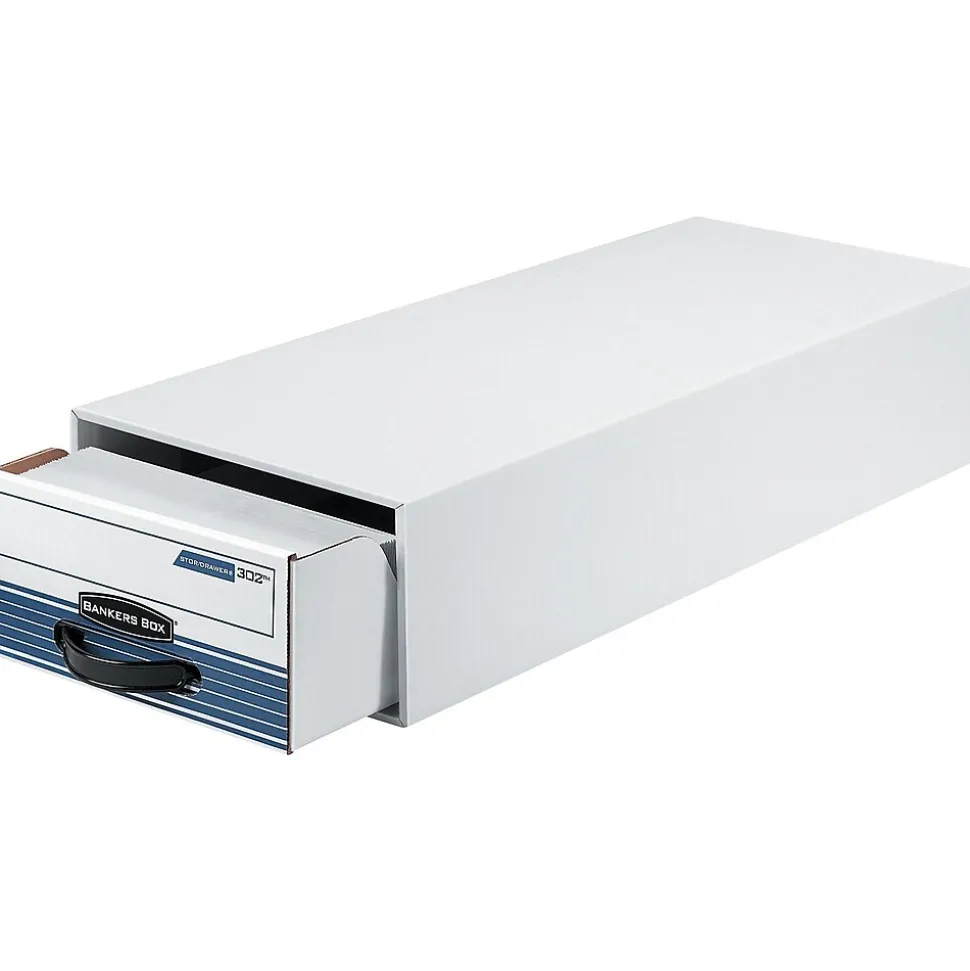 Organize and store checks with these storage drawers. The reinforced plastic handles make these drawers easy to open and shut, providing quick access to contents, while the four-layer panel construction in the front and back delivers durability. These Bankers Box Stor/Drawer Steel Plus storage drawers stack up to five units high, saving precious floor space for other purposes.