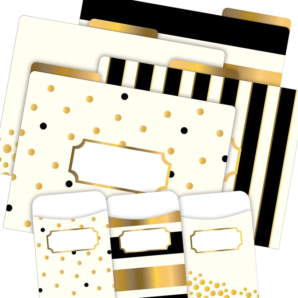 Barker Creek’s Gold Folder/Pocket Set is great for so many projects!The set includes 12 folders — three each of four beautiful designs and 30 peel & stick library pockets – ten each of three colorful designs.The file folders are printed on 14-point stock which makes them perfect for desktop filing, meeting handouts, and student papers. Create learning center activities and lapbooks, or simply add pockets to your folders for filing smaller items or keeping an index card size list. It’s easy to customize Barker Creek’s Folder/Pocket set to fit your needs and works well in any school, home, office, or dorm.Coordinating products available: Search Barker Creek Gold.