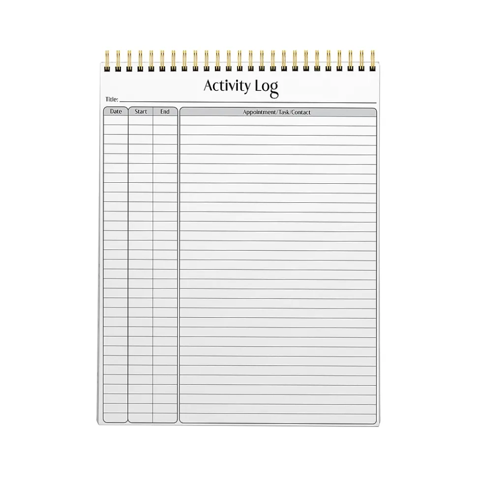This 50-sheet Activity Log notepad by Better Office has thick sheets with a simple yet attractive design. The spiral top binding allows for effortless tearing off of sheets. Use this notepad to keep track of all your goals, tasks, and projects.