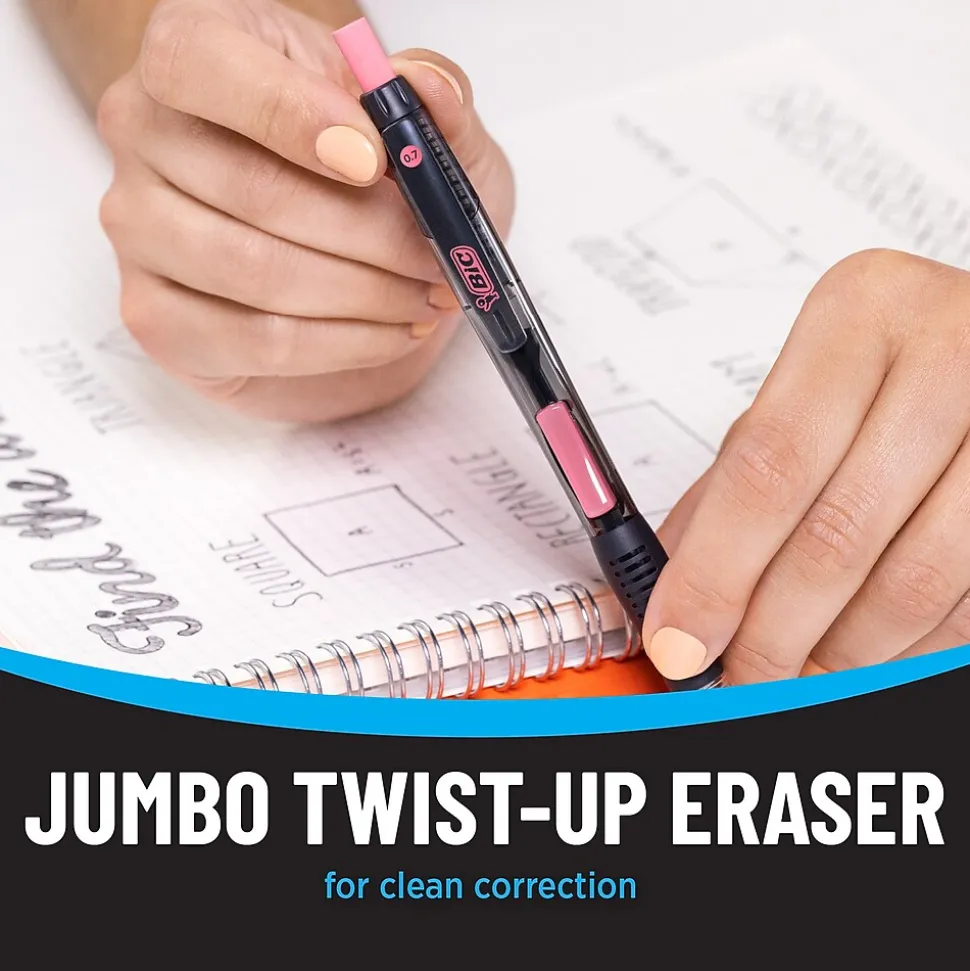 - Easily erase unwanted marks and make clean corrections with the jumbo twist-up erasers that won’t smudge