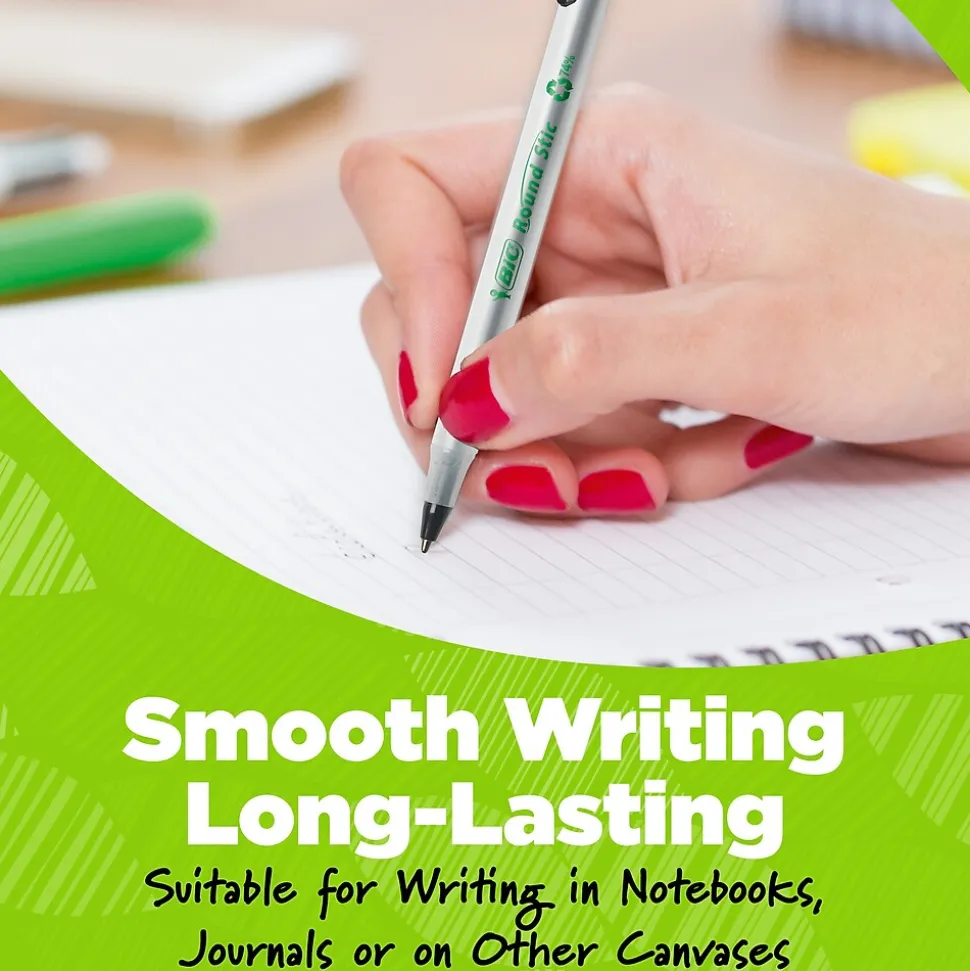 - One package contains 50 BIC Ecolutions Round Stic Black Ballpoint Pens