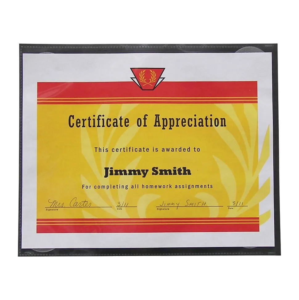 - Holders grip office panel walls to display phone lists, photos, certificates, and more