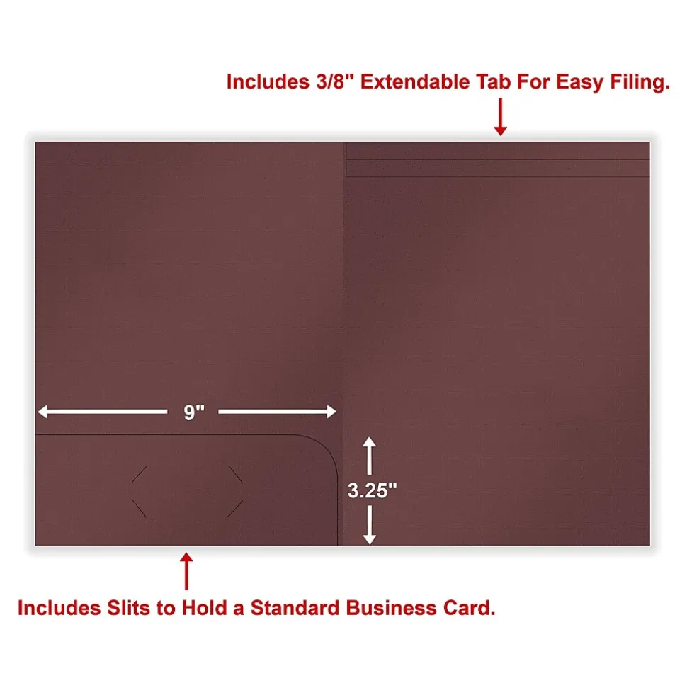 - Presentation folder in burgundy color; 50 folders per pack