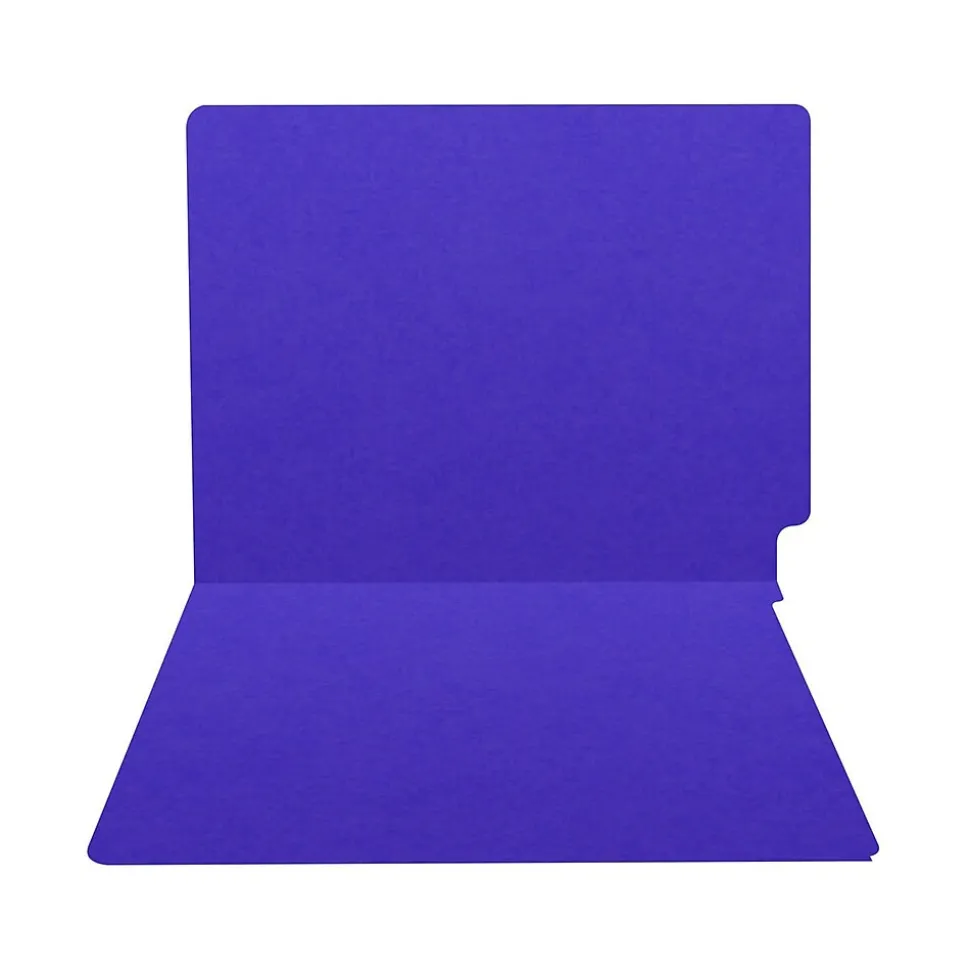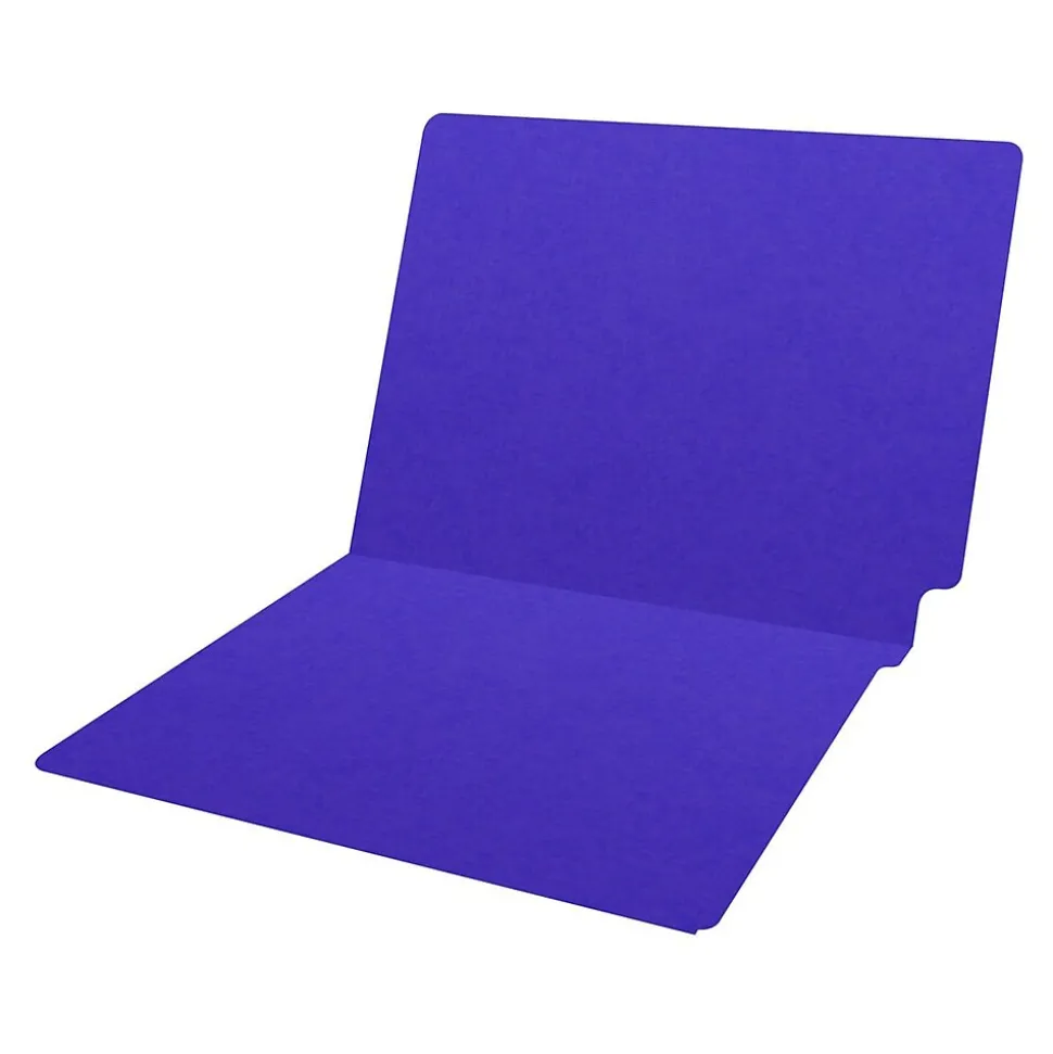 - Heavy-duty file folder made of 20 pt. paper stock in purple