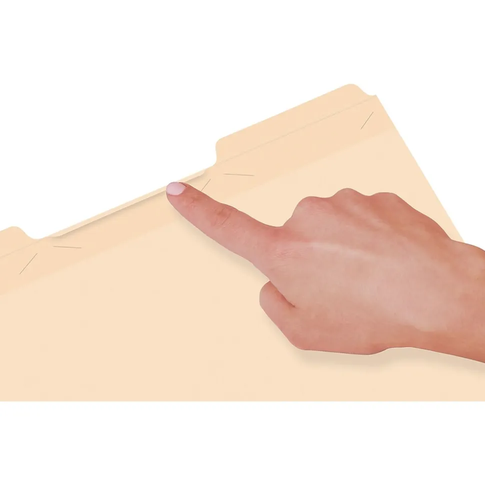 Pendaflex Ready-Tab File Folders feature built-in tabs for faster file setup. Standard 11 pt. folders with 3 poly-reinforced tabs. Folders come with all three tab positions – choose the one you want and fold the others out of the way. Letter size. Manil a. Paper made from 10% recycled fiber with 10% post-consumer fiber. 50/Box.