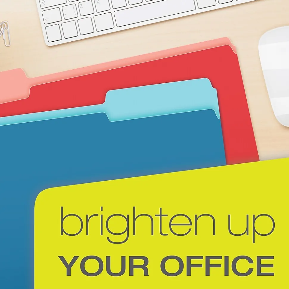 Interior file folder fits neatly inside a hanging folder without obscuring tabs. Folder features two-tone design that prevent misfiles and is reversible to double your color options.