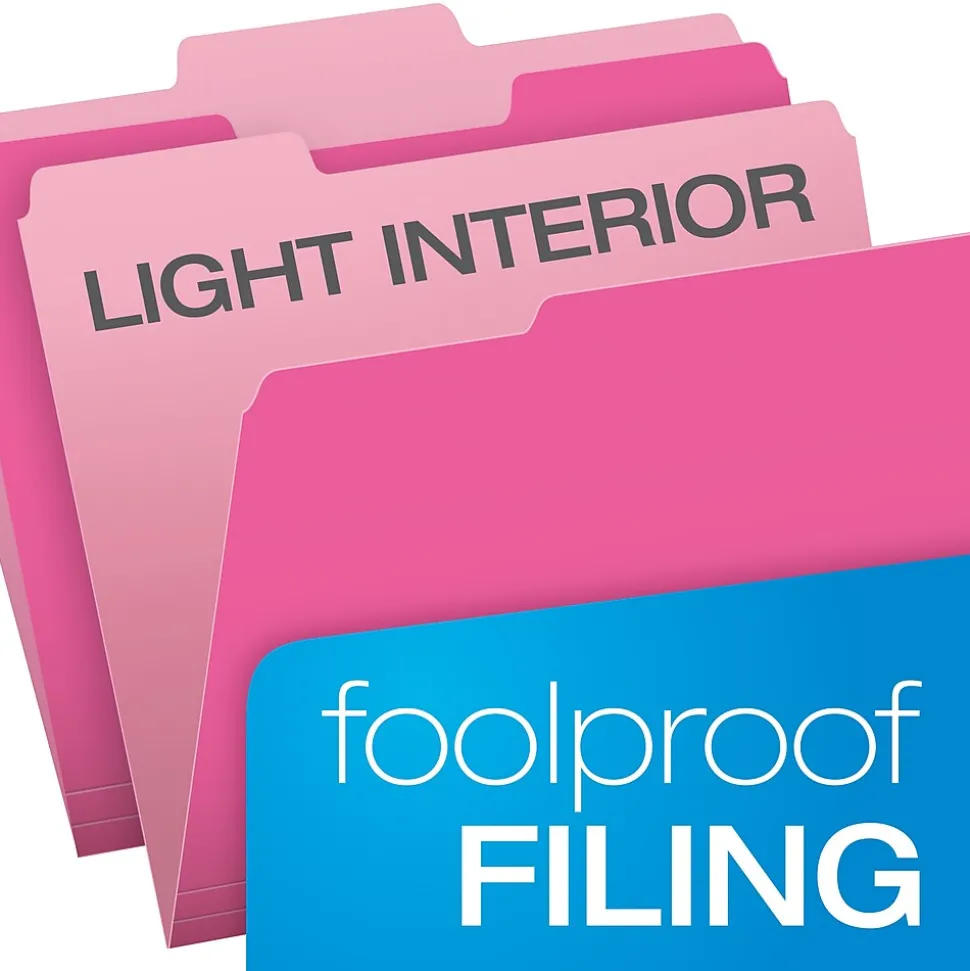 Hard-working interior file folders fit inside hanging folders without obscuring tabs. Perfect for subdividing records within a hanging folder. Color-matched to hanging folders, creating a well organized and coordinated way to keep track of project records. Two-tone design helps prevent misfiles and is reversible to double your color options. 11 pt. stock. Acid-free.
