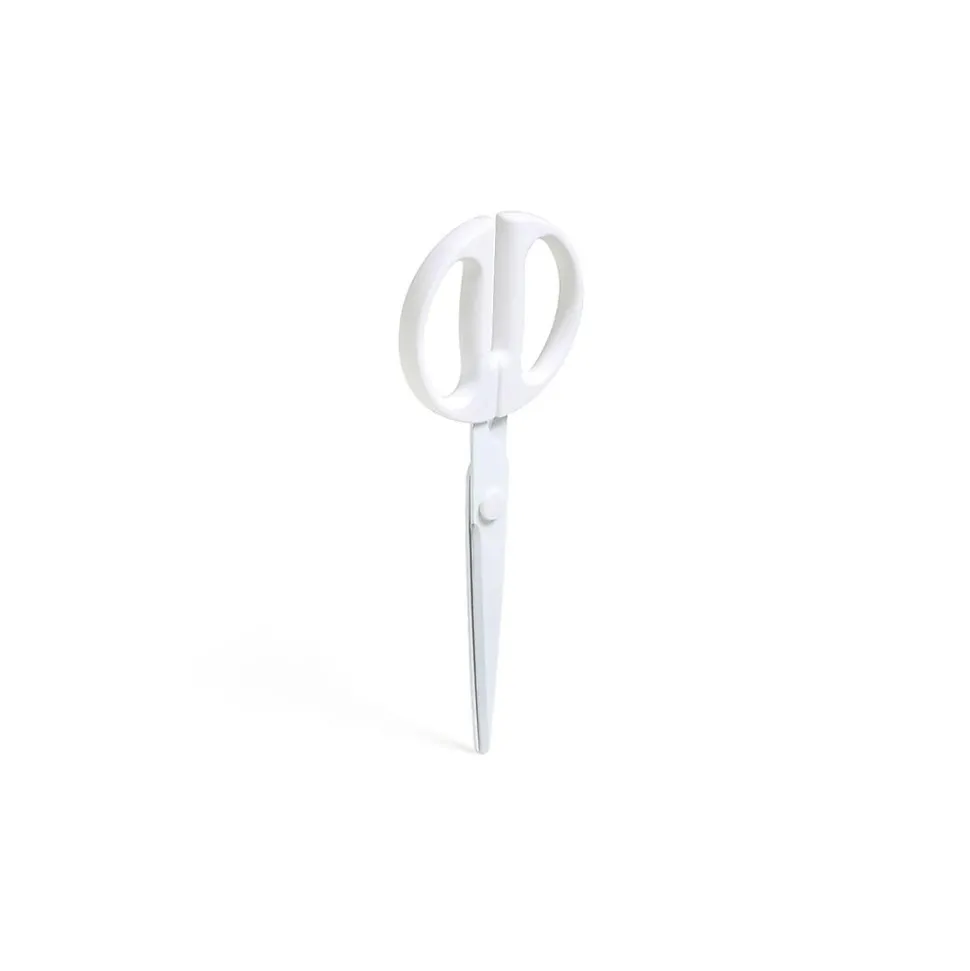 Cut effortlessly through art and craft materials with these white scissors. The round, molded handles offer precise control. These Poppin scissors have long, Teflon-coated blades that work smoothly on sticky surfaces.