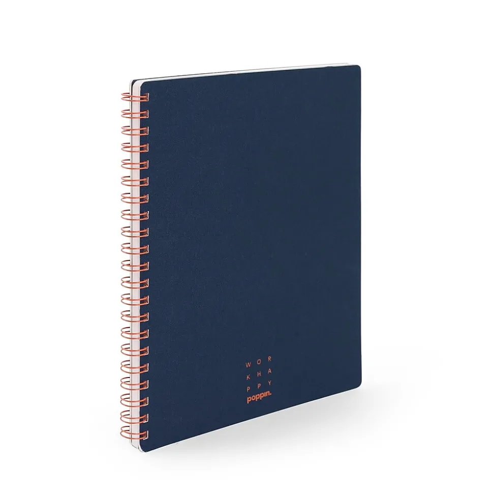 This Work Happy one-subject spiral notebook lies perfectly flat for taking notes in meetings, conferences, or class. The book cloth cover and reminder to work happy offer a sophisticated take on the backpack staple.