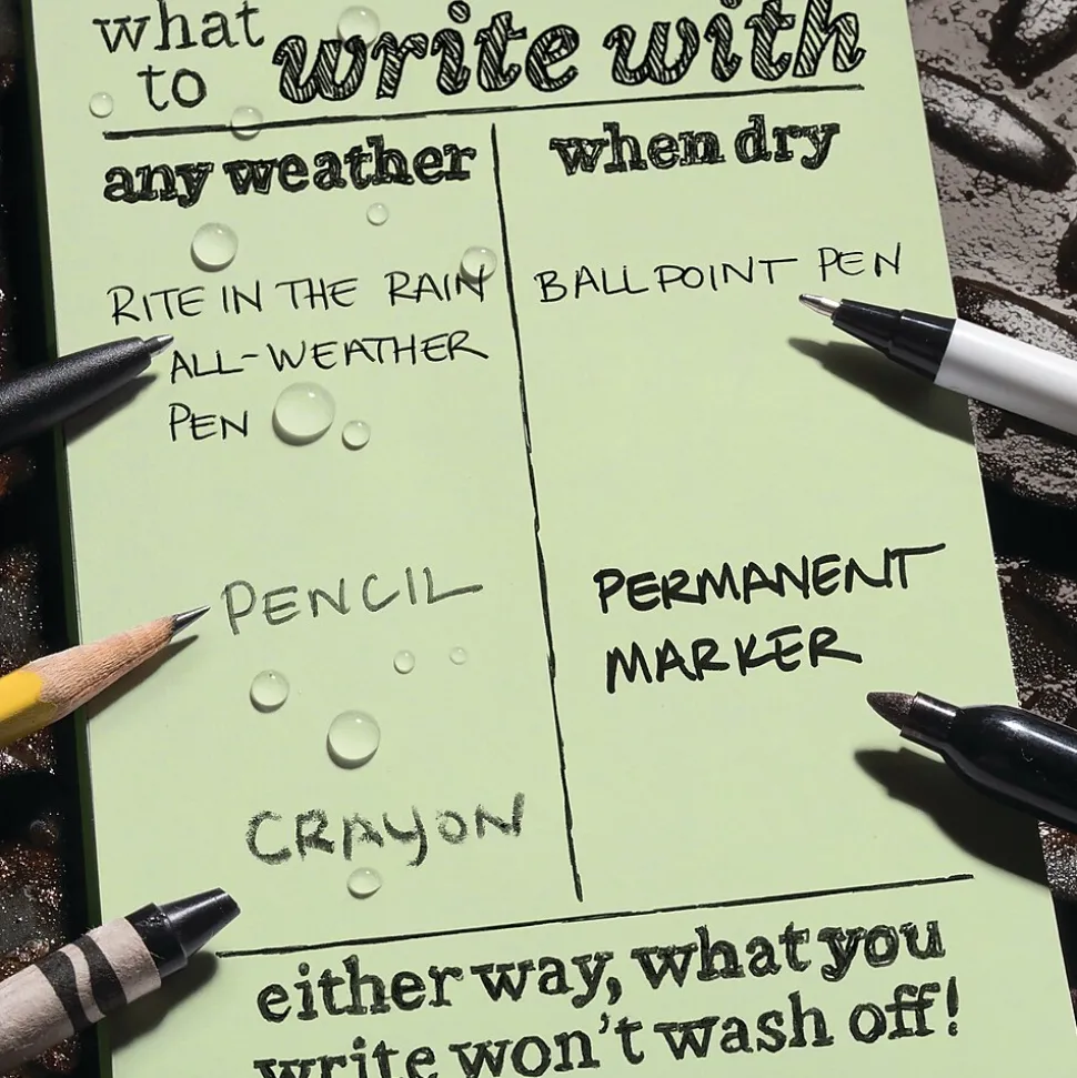 Protect yourself and your notes by using this Rite in The Rain notebook. Useful reference material is also printed on the back and inside covers.