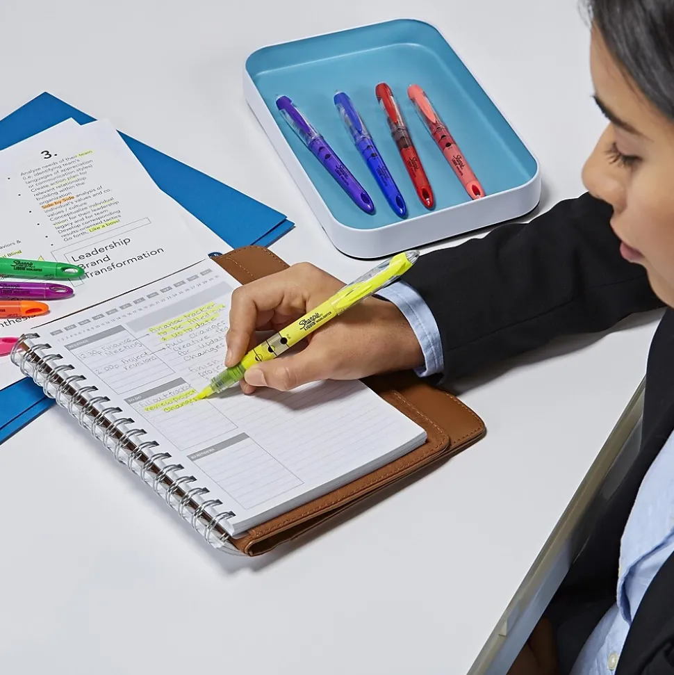 - Sharpie Liquid Highlighters with visible ink supply that allows you to know before you’re low!