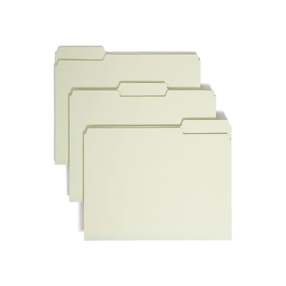 Sort and store paperwork with these pressboard file folders. The 1/3-cut assorted-position tabs provide ample space for printed or handwritten labels, making documents easy to find inside cabinet drawers. Each folder features a 1-inch expansion to accommodate thick stacks of paper, so you can consolidate existing files. With sturdy pressboard construction, these Smead letter-size file folders withstand everyday wear and tear.
