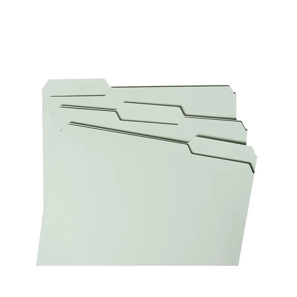 Ensure office paperwork and client files are neat and accessible with this 25-count pack of Smead file folders. Assorted 1/3-cut tabs integrate with existing filing systems and keep titles visible to let you find information quickly. The 25-point pressboard material and 2-inch expansion with a reinforcing gusset of these Smead file folders provide storage space and durability to hold bulky, frequently used files.