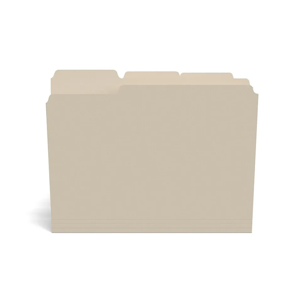 Manage your filing projects with these letter-size manila file folders. The three 3.5 inches long 1/3-cut top tabs offer ample space for labels, while the manila color lends a professional look to your file storage. Featuring sturdy 11-point paper stock construction, these Staples letter-size manila file folders are durable, and the assorted tab positions make it easy to find records.
